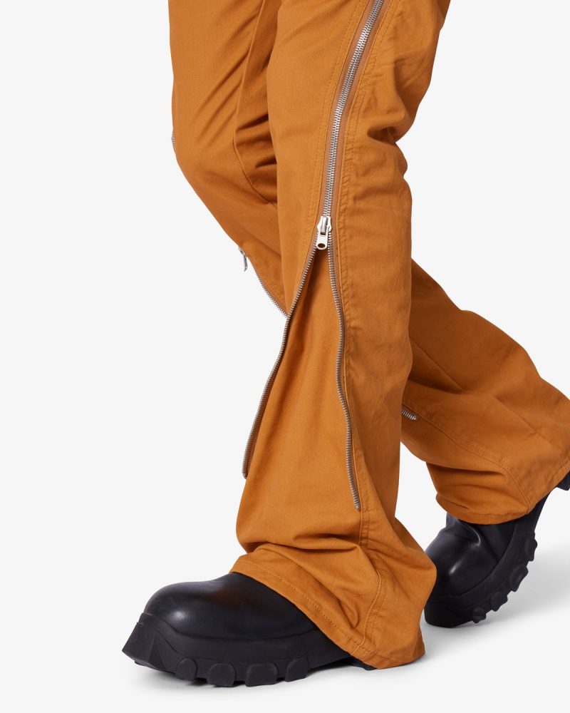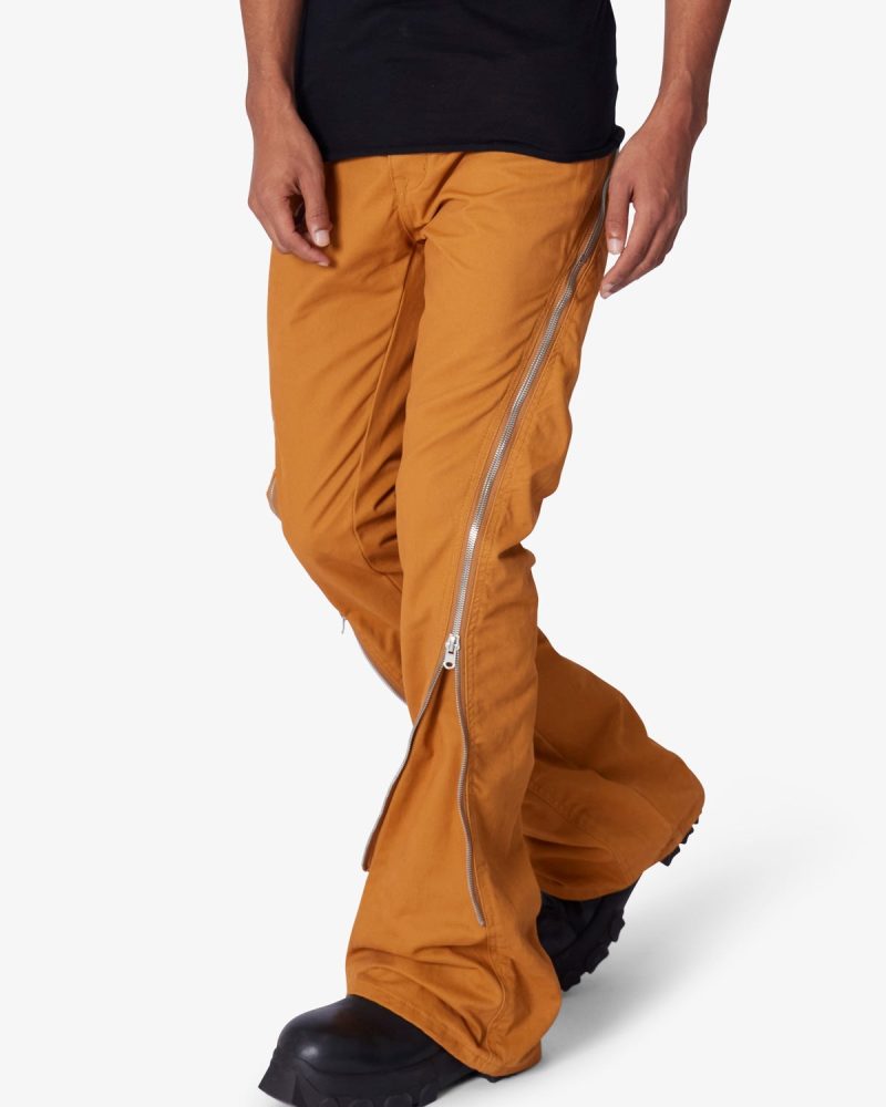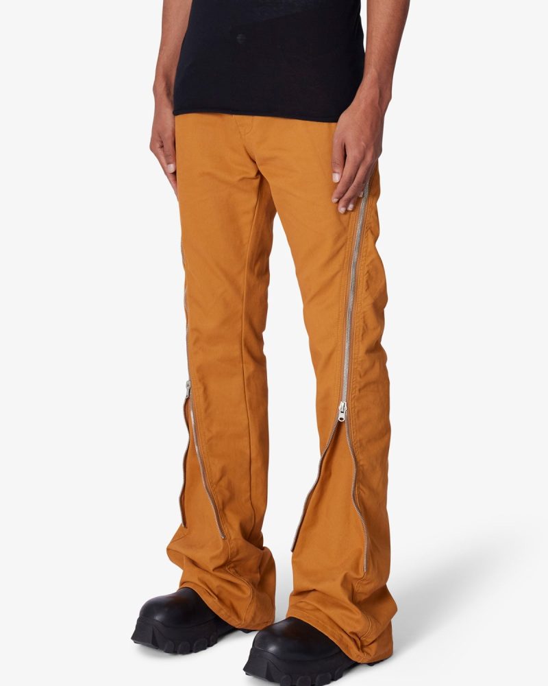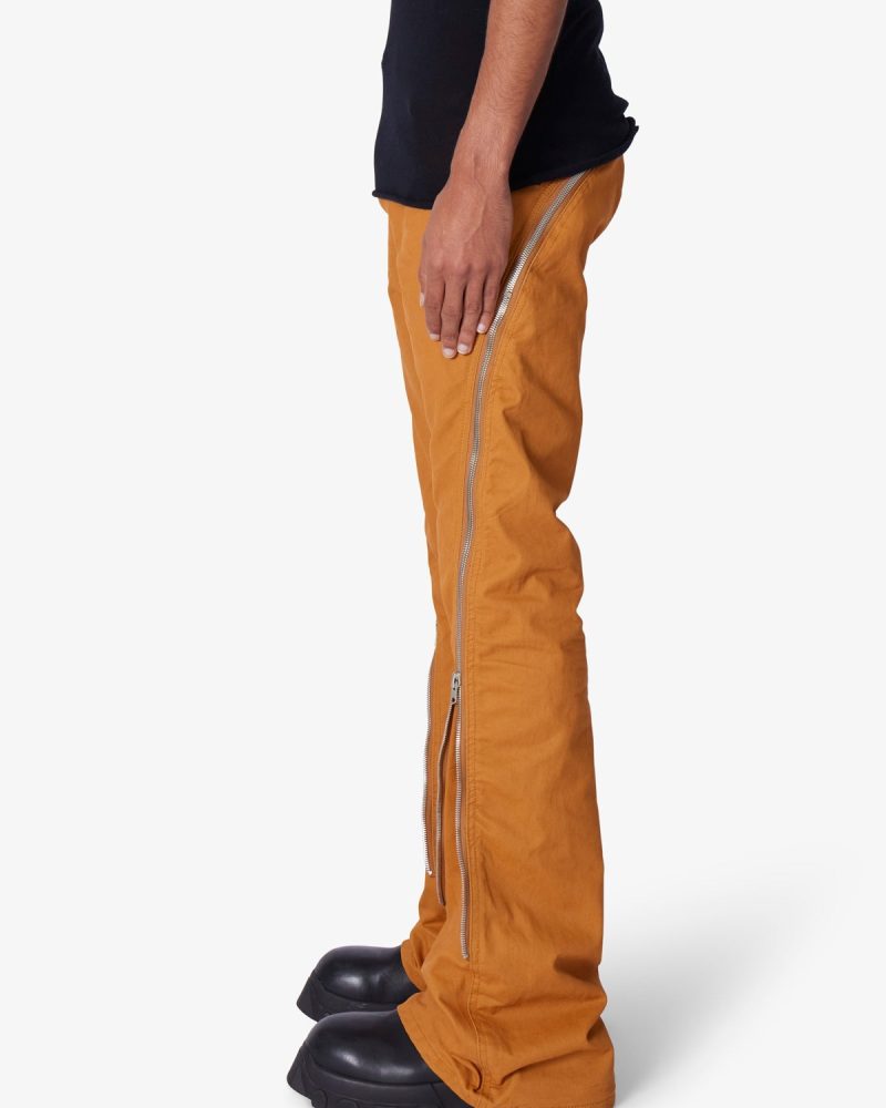 the D519 Zipper Flare Denim is designed with our D fit which is straight throughout. zipper detail extending from the thigh to the shin to provide a flare fit through the leg. and is constructed from orange denim.
