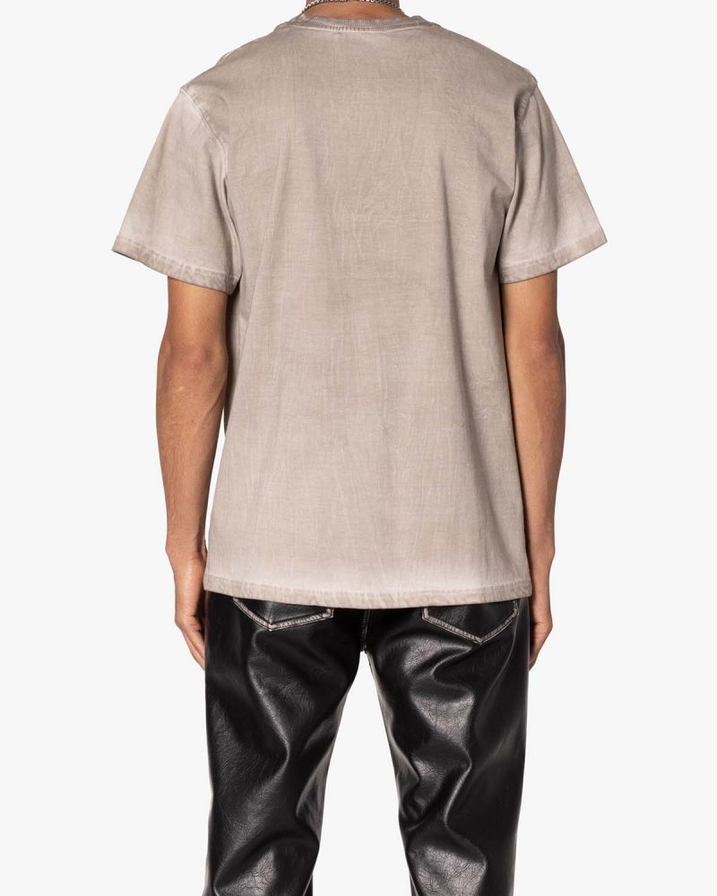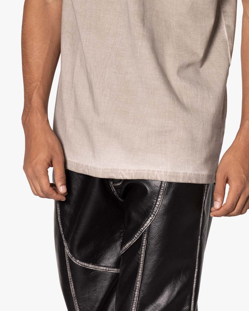 the Oil Rag Tee is a 100% cotton tee is the perfect take on a classic made interesting. The tee features a finished hem. contrast collar. and a gradient spray conveying a dirty rag look