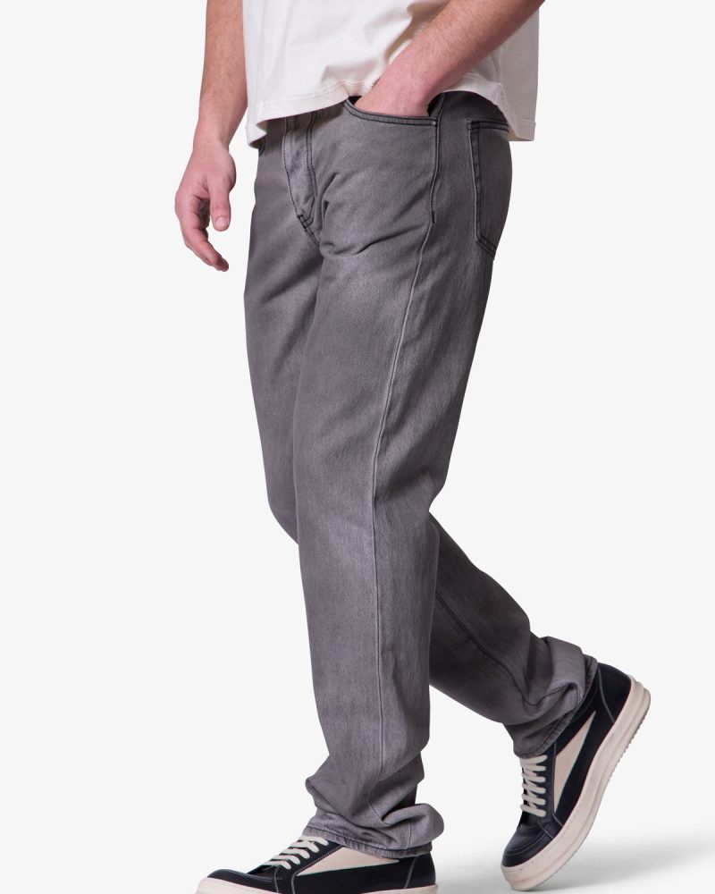 the new Straight Denim are designed with our new and updated relaxed fit. which is relaxed throughout for increased comfort and updated look. and is constructed from 100% 13 oz black cotton denim with a heavy vintage wash. and finished with traditional five pocket denim details.