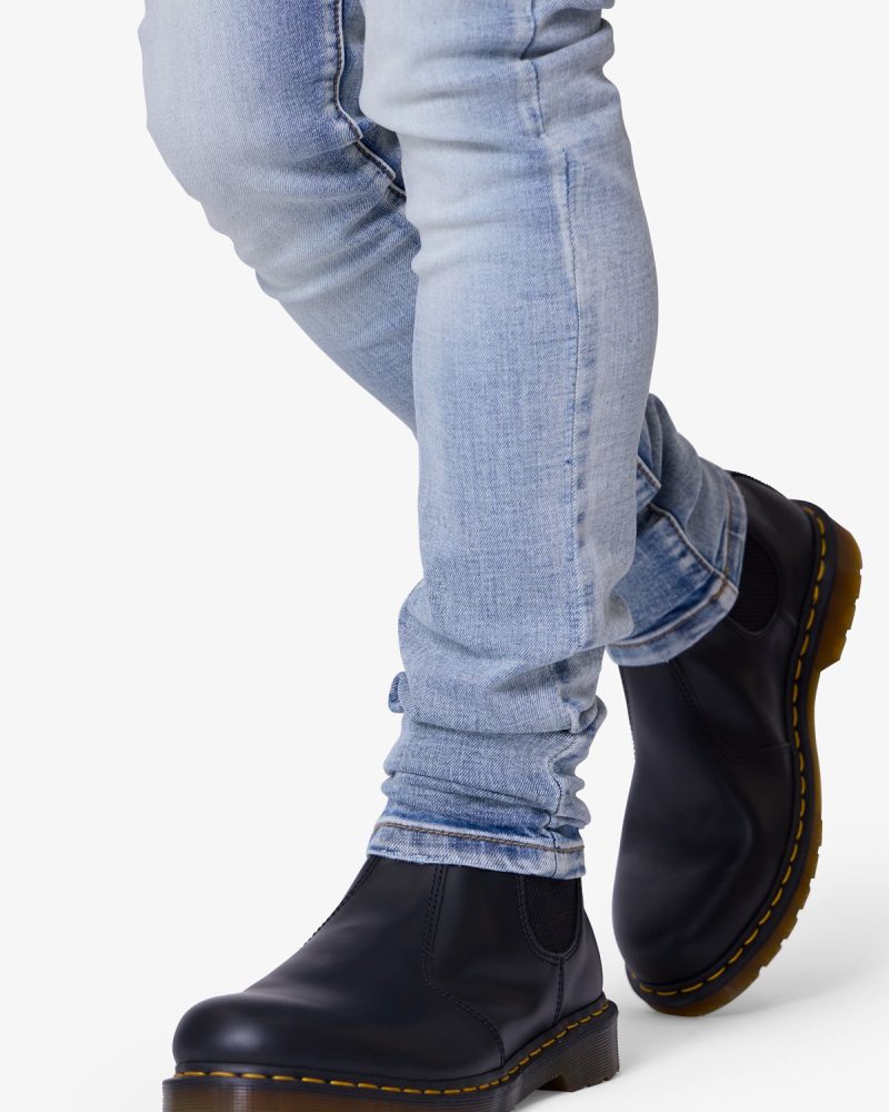 the new Skinny Denim are designed with our new and updated skinny fit. which is skinny throughout for increased comfort and updated look. and is constructed from stretch 13 oz indigo cotton denim with a light vintage wash. and finished with traditional five pocket denim details.