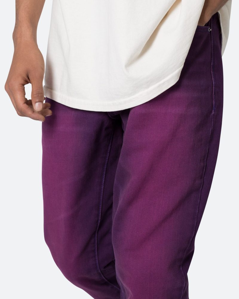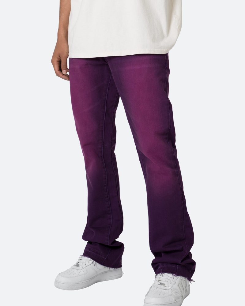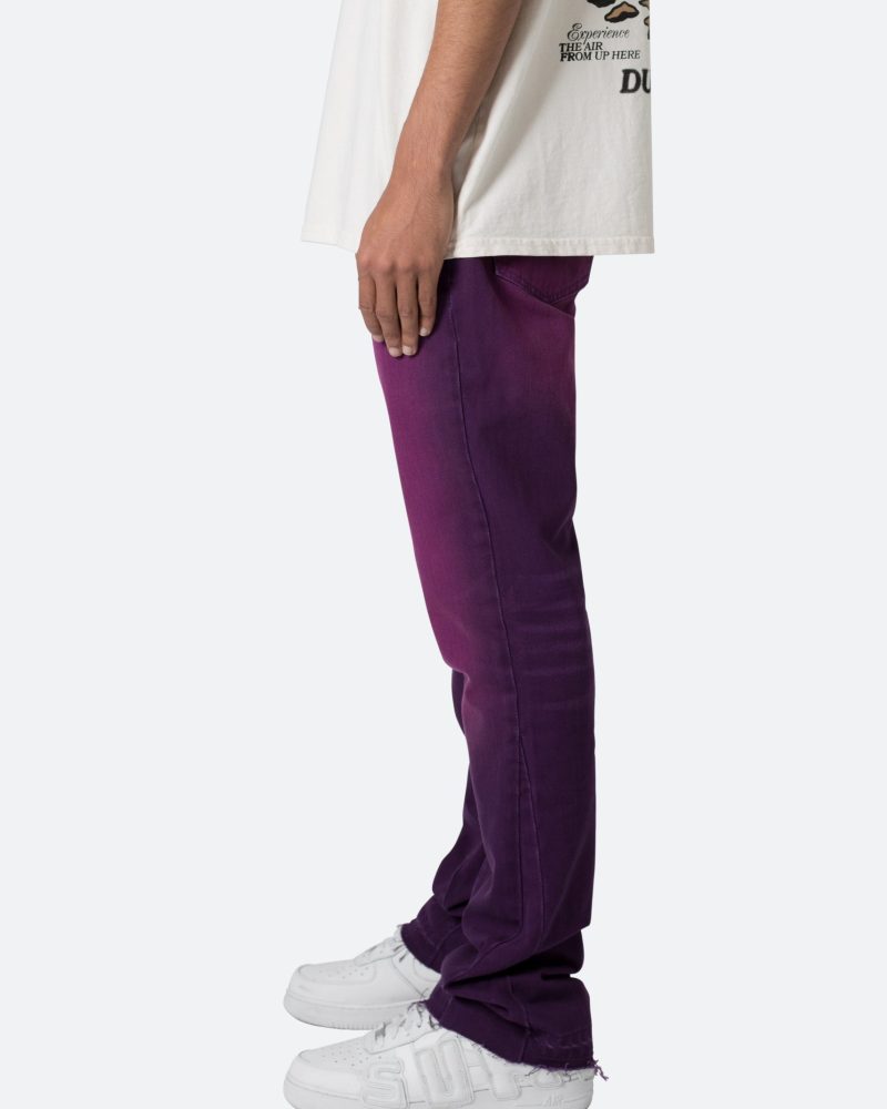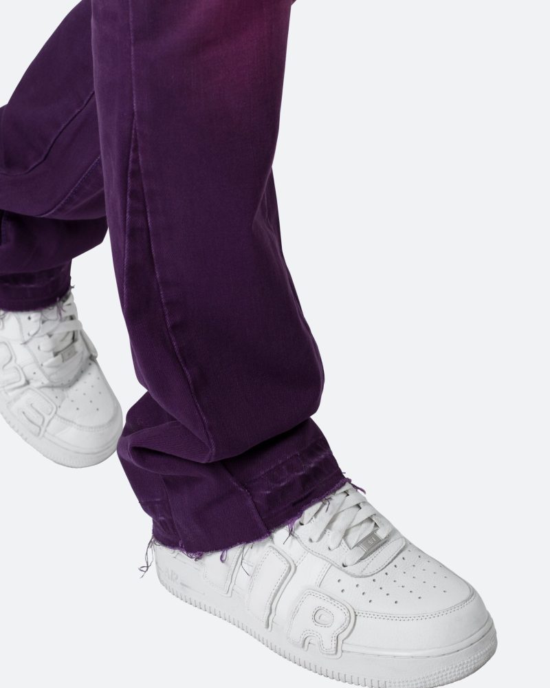 the B512 Flare Denim are designed with our new B fit. which is slim through the thigh and features a slight flare at the leg opening and is constructed from a purple washed black denim. panelling at the inseam and outseam from a self fabric for a slight flare and finished with a deconstructed hem.