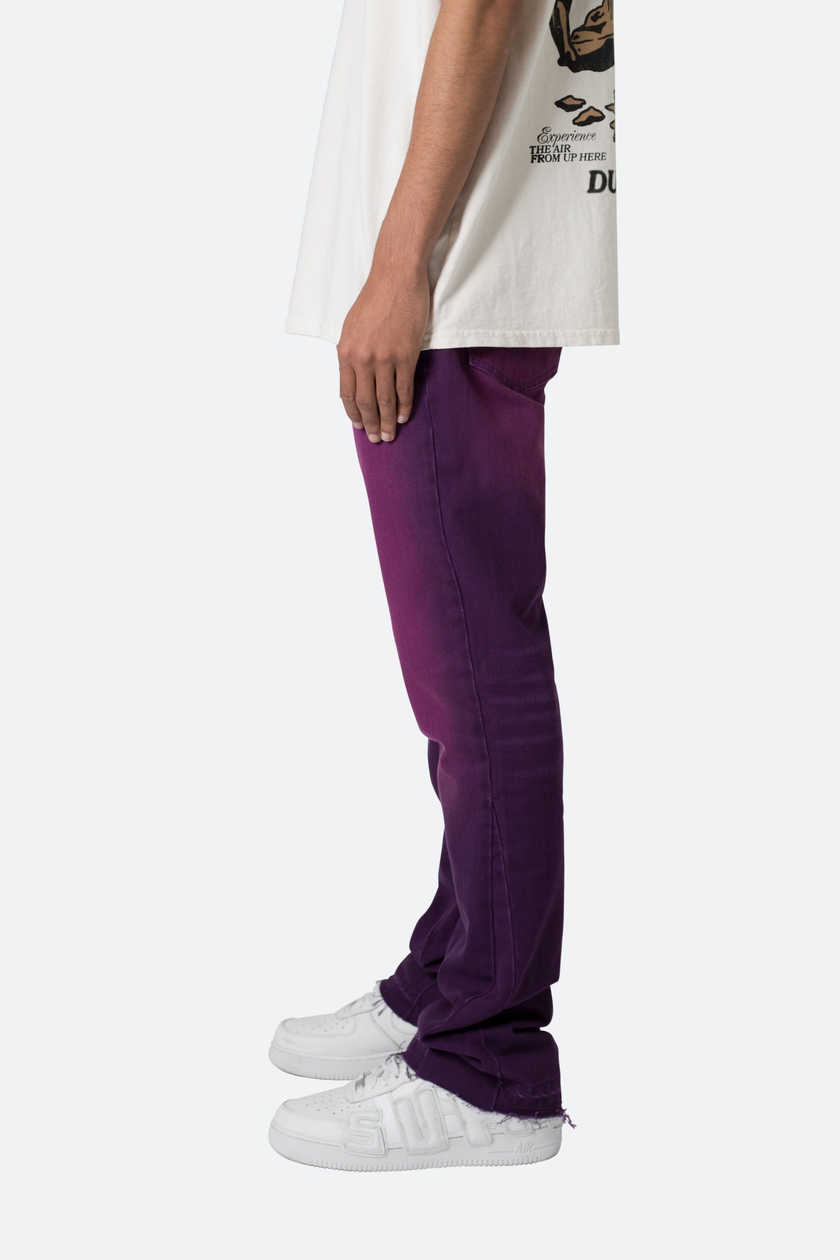 the B512 Flare Denim are designed with our new B fit. which is slim through the thigh and features a slight flare at the leg opening and is constructed from a purple washed black denim. panelling at the inseam and outseam from a self fabric for a slight flare and finished with a deconstructed hem.