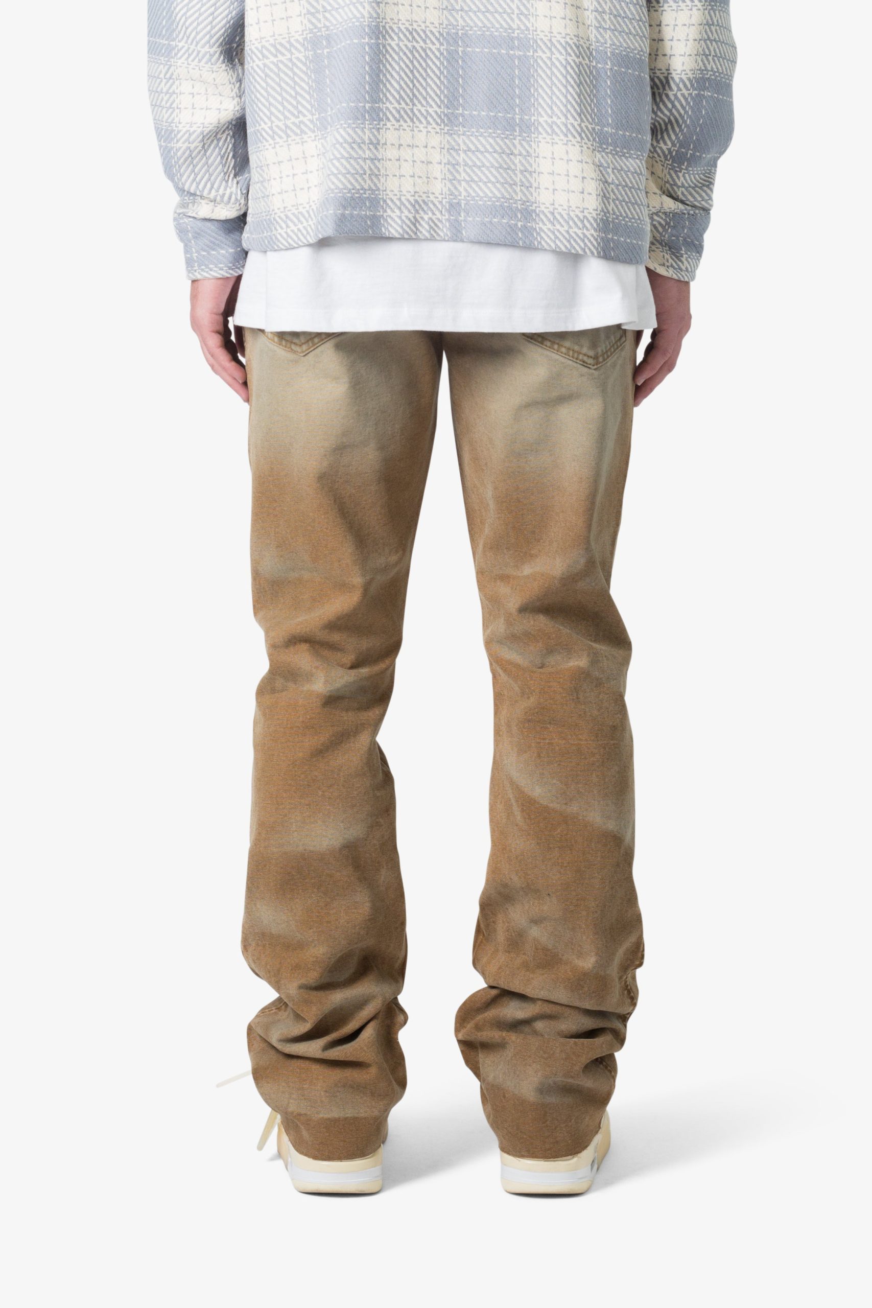 the B643 Flare Burnt Cowboy Denim are designed in our B fit. which is relaxed through the thigh and features a slight flare at the leg opening and is constructed from washed tan work twill. heavy sanding details throughout for a more vintage feel and look. and finished with a traditional hem.