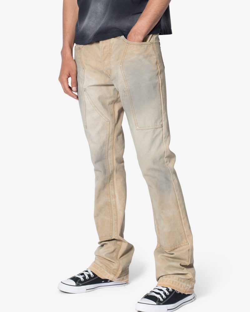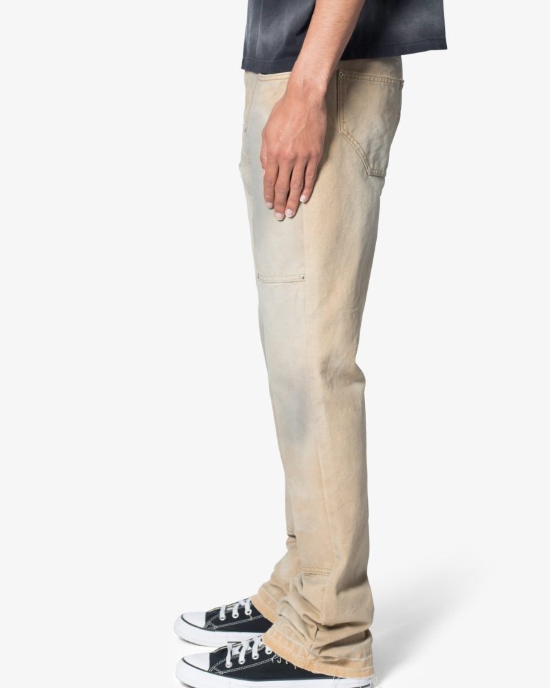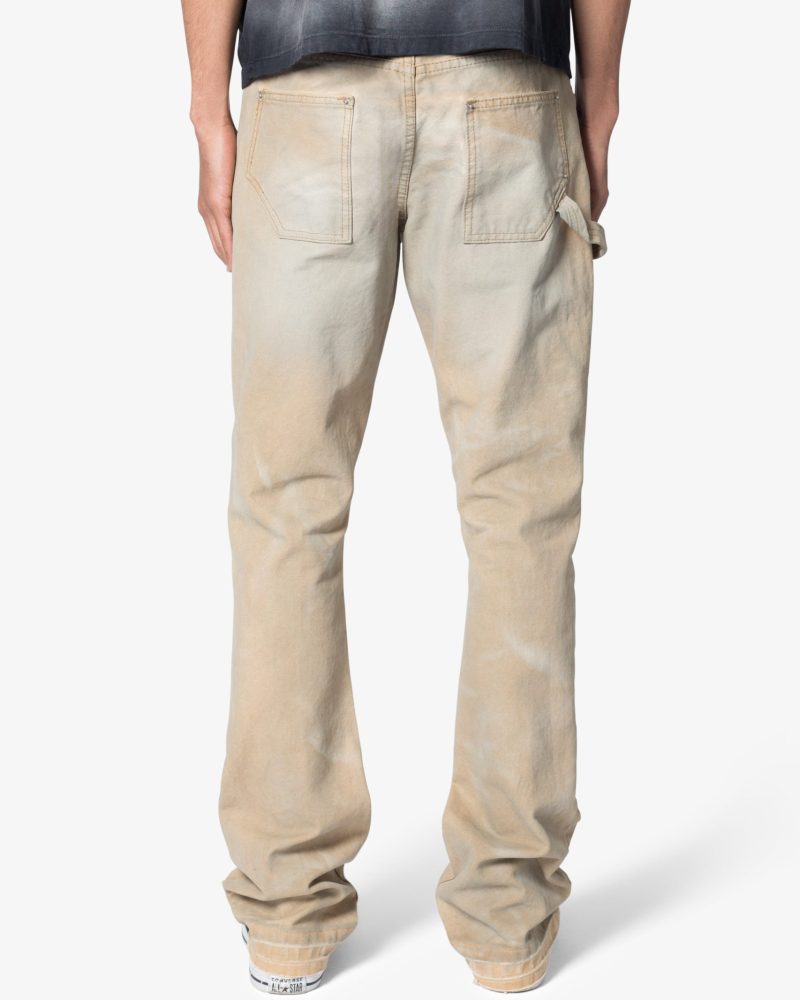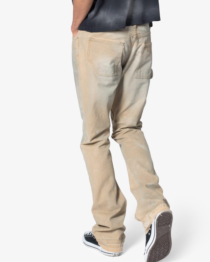 the B644 Flare Burnt Cowboy Denim are designed in our B fit. which is relaxed through the thigh and features a slight flare at the leg opening and is constructed from washed tan work twill. heavy sanding details throughout for a more vintage feel and look. and finished with a traditional hem.
