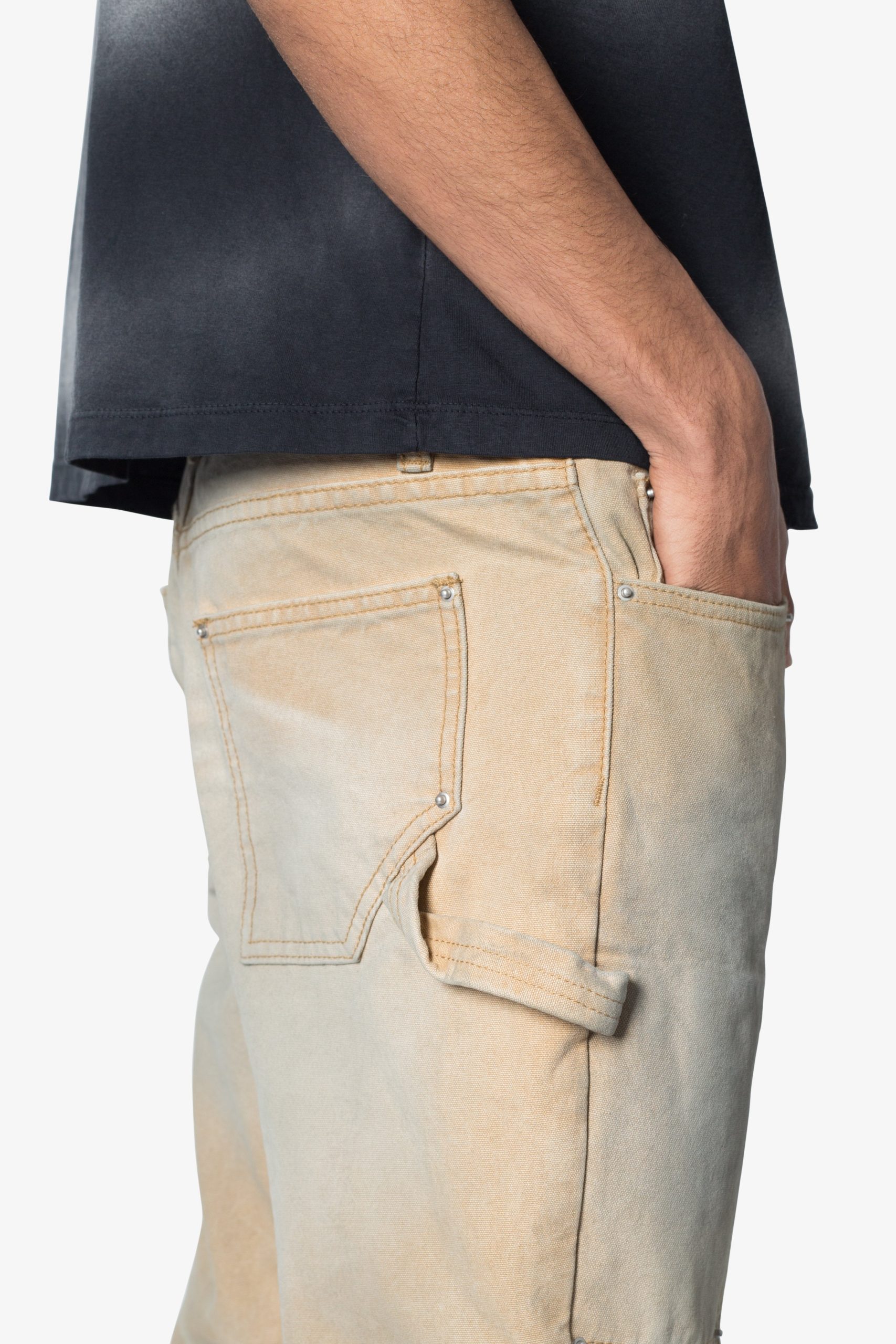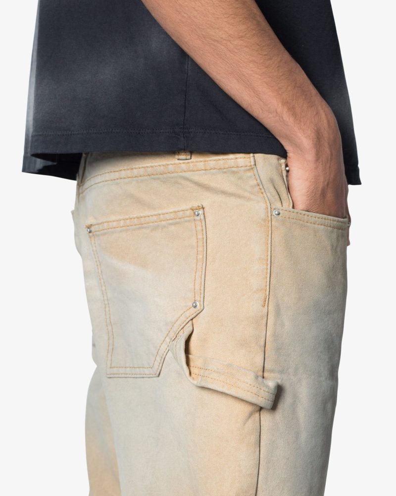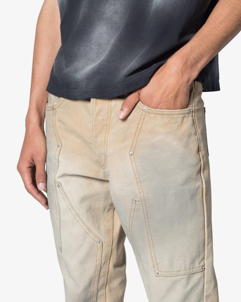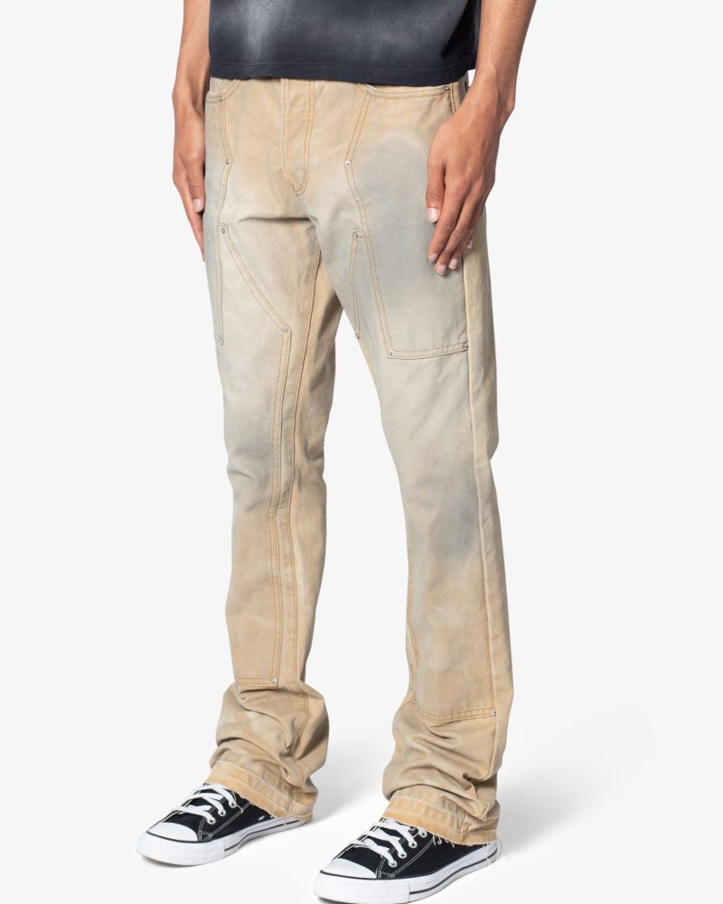 the B644 Flare Burnt Cowboy Denim are designed in our B fit. which is relaxed through the thigh and features a slight flare at the leg opening and is constructed from washed tan work twill. heavy sanding details throughout for a more vintage feel and look. and finished with a traditional hem.
