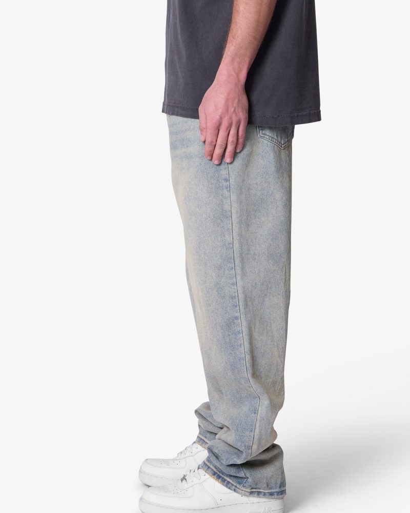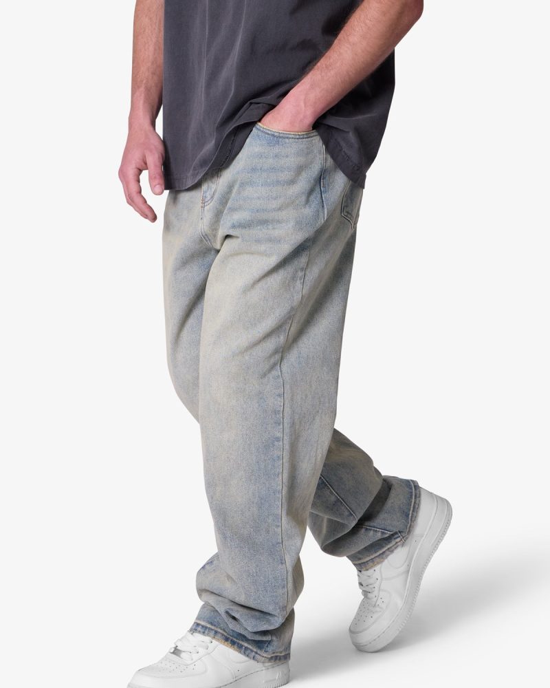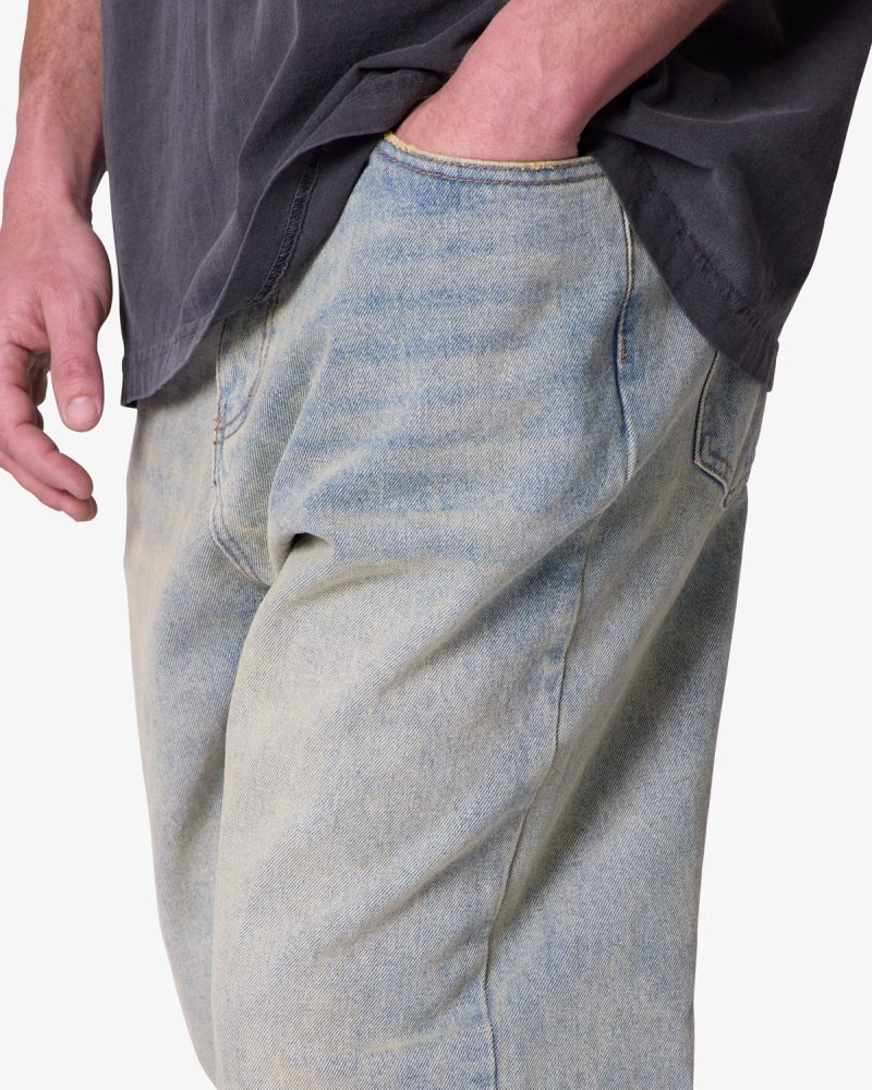 the new Baggy Denim are designed with our new and updated baggy fit. which is relaxed throughout for increased comfort and updated look. and is constructed from 100% 13 oz indigo cotton denim with a light vintage wash. and finished with traditional five pocket denim details.