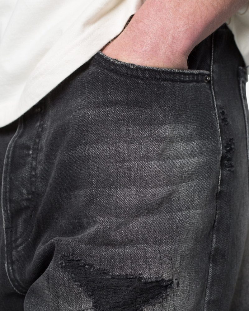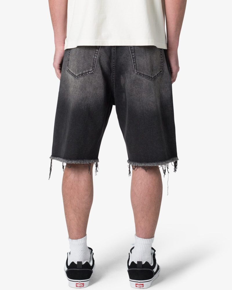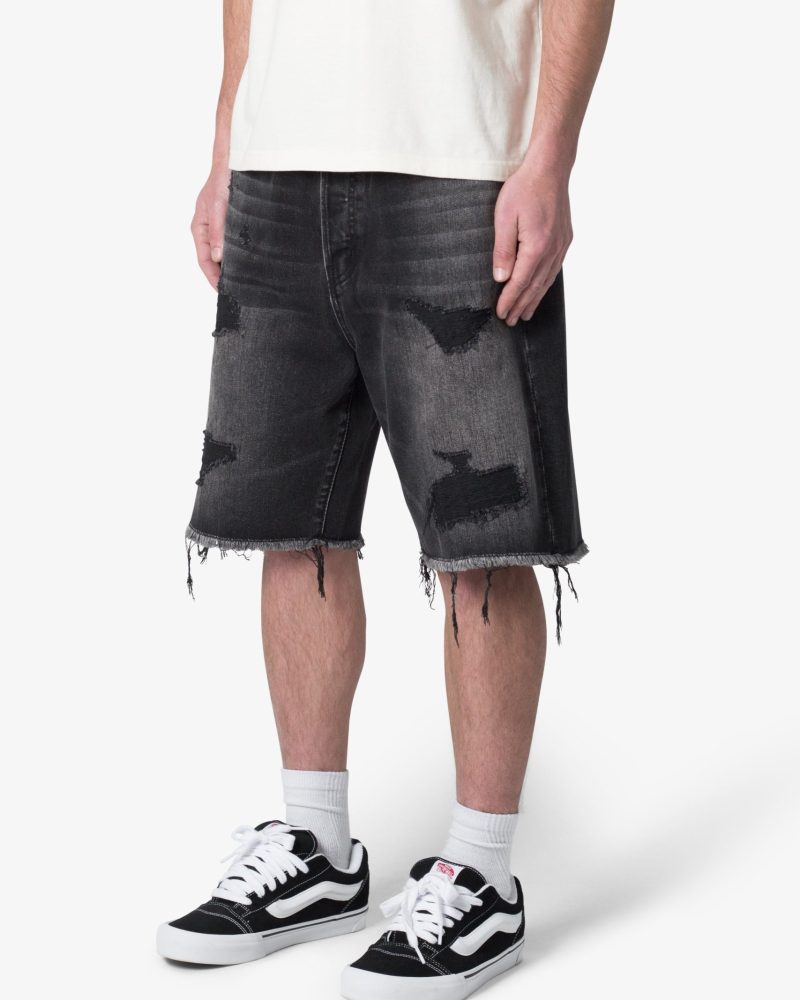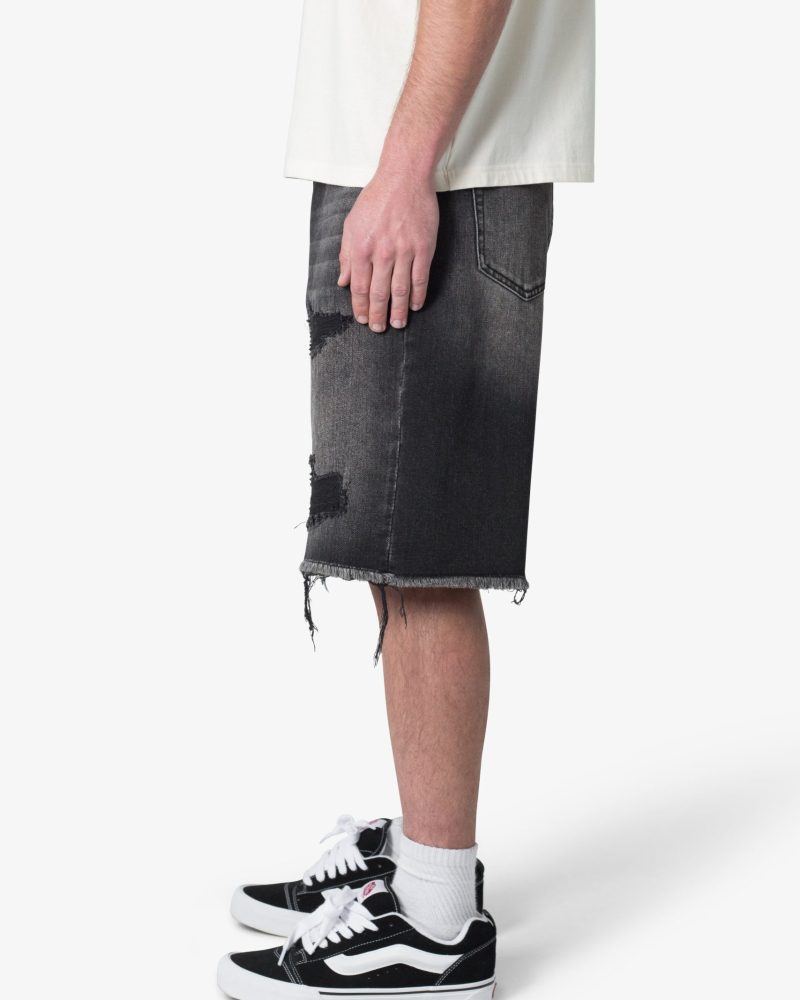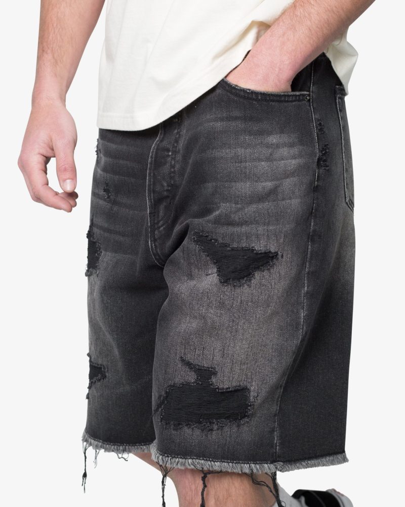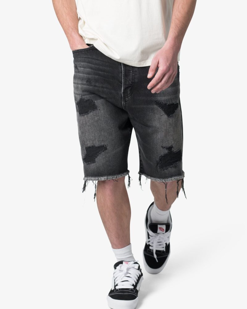Baggy Rip Denim Shorts – Washed Black