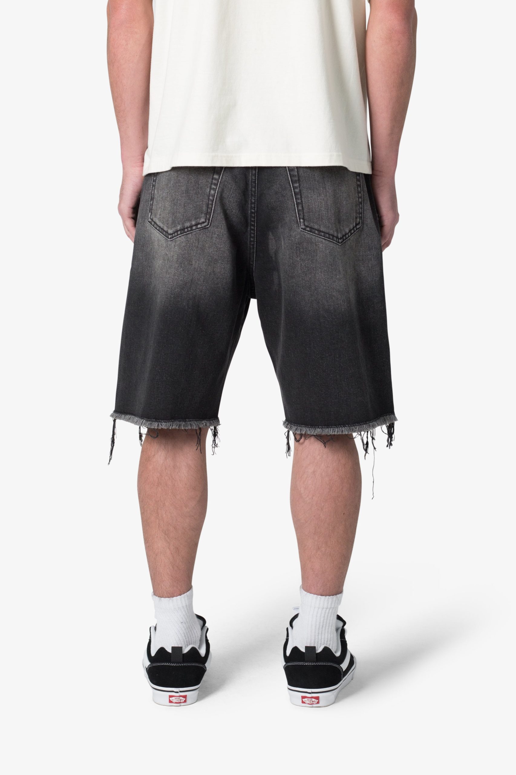Baggy Rip Denim Shorts – Washed Black
