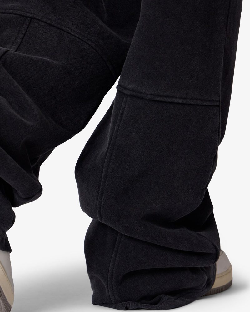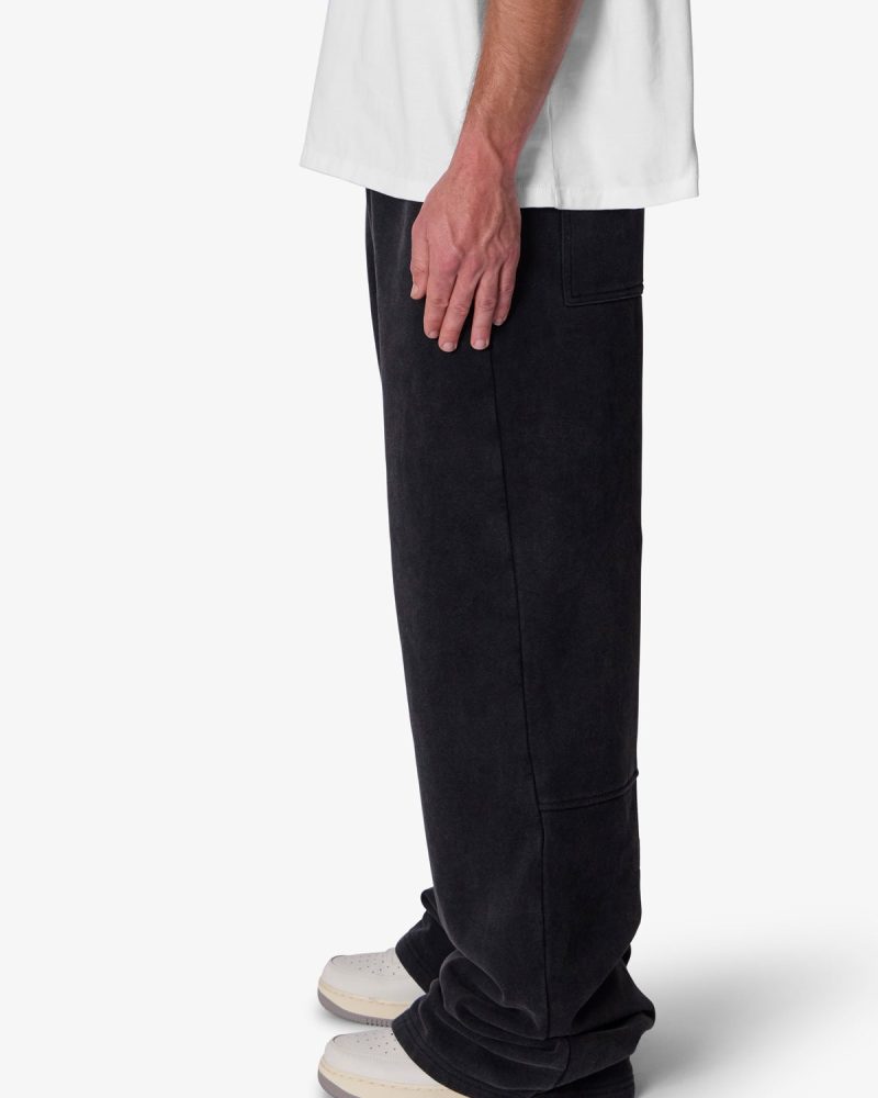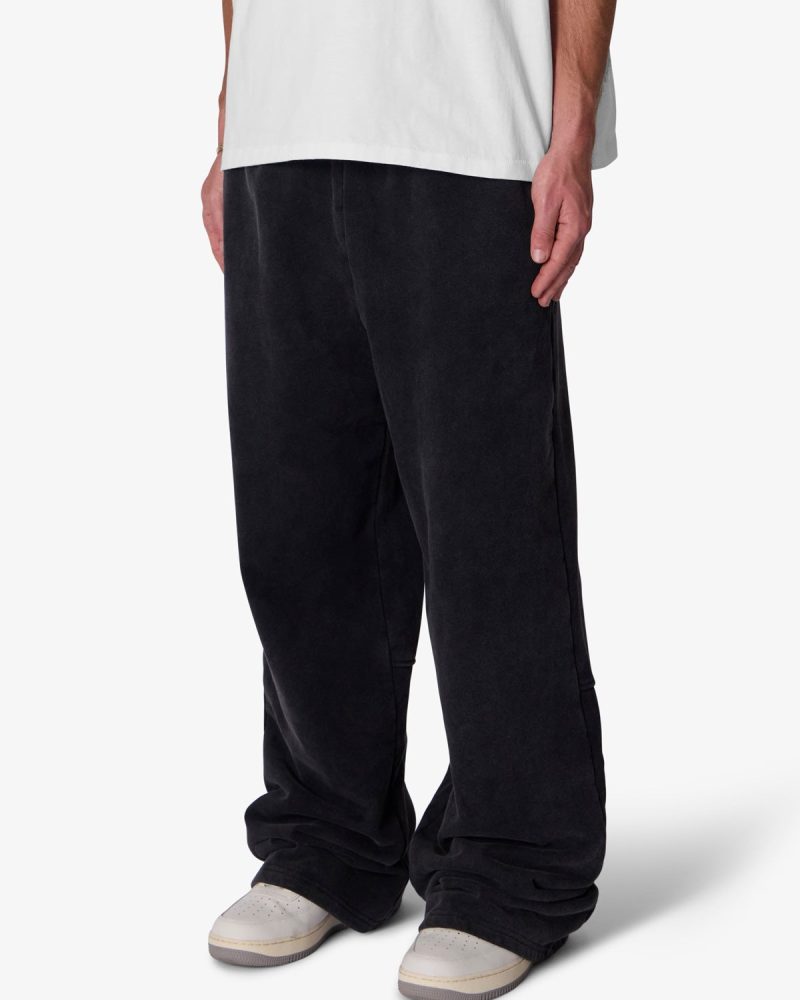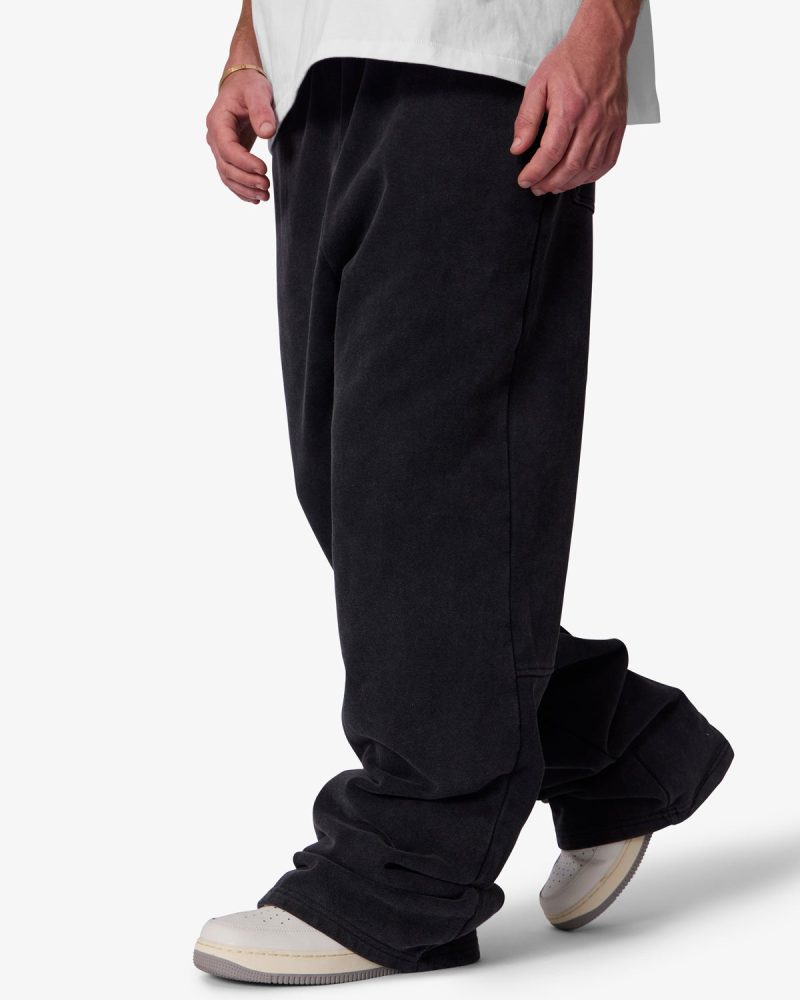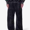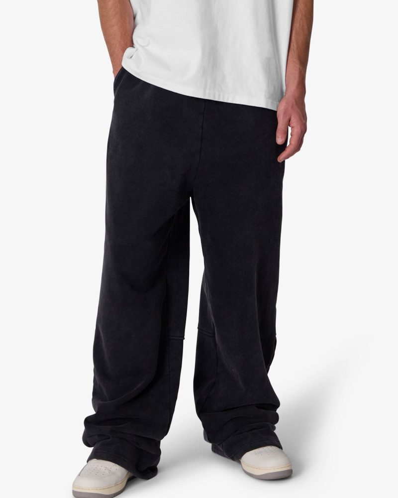 the Boxing Oversized Sweatpants are designed with a baggy fit throughout. featuring an elasticized self waist. paneling on the back of the leg opening. raw hem at the leg opening. and finished in both a washed and brushed fleece fabric.