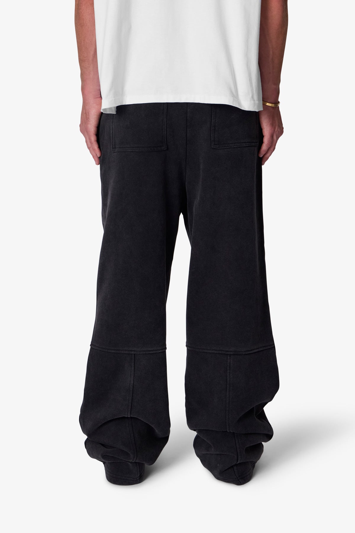 the Boxing Oversized Sweatpants are designed with a baggy fit throughout. featuring an elasticized self waist. paneling on the back of the leg opening. raw hem at the leg opening. and finished in both a washed and brushed fleece fabric.