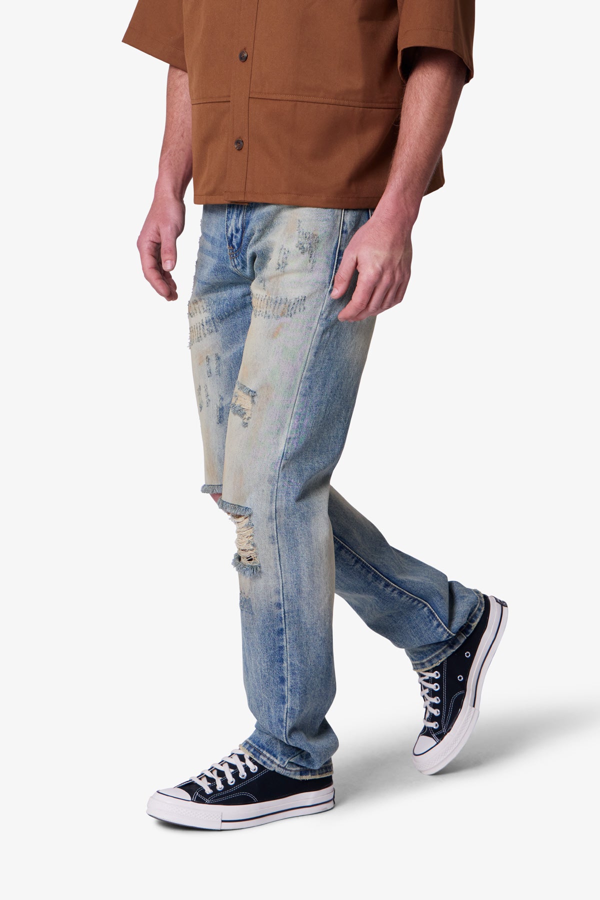- Knee blowouts and dremmel distressing