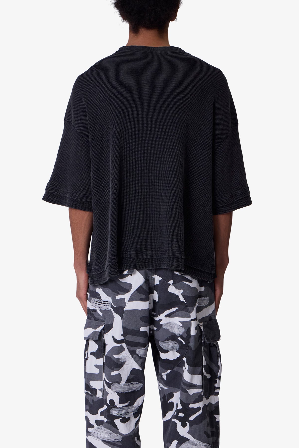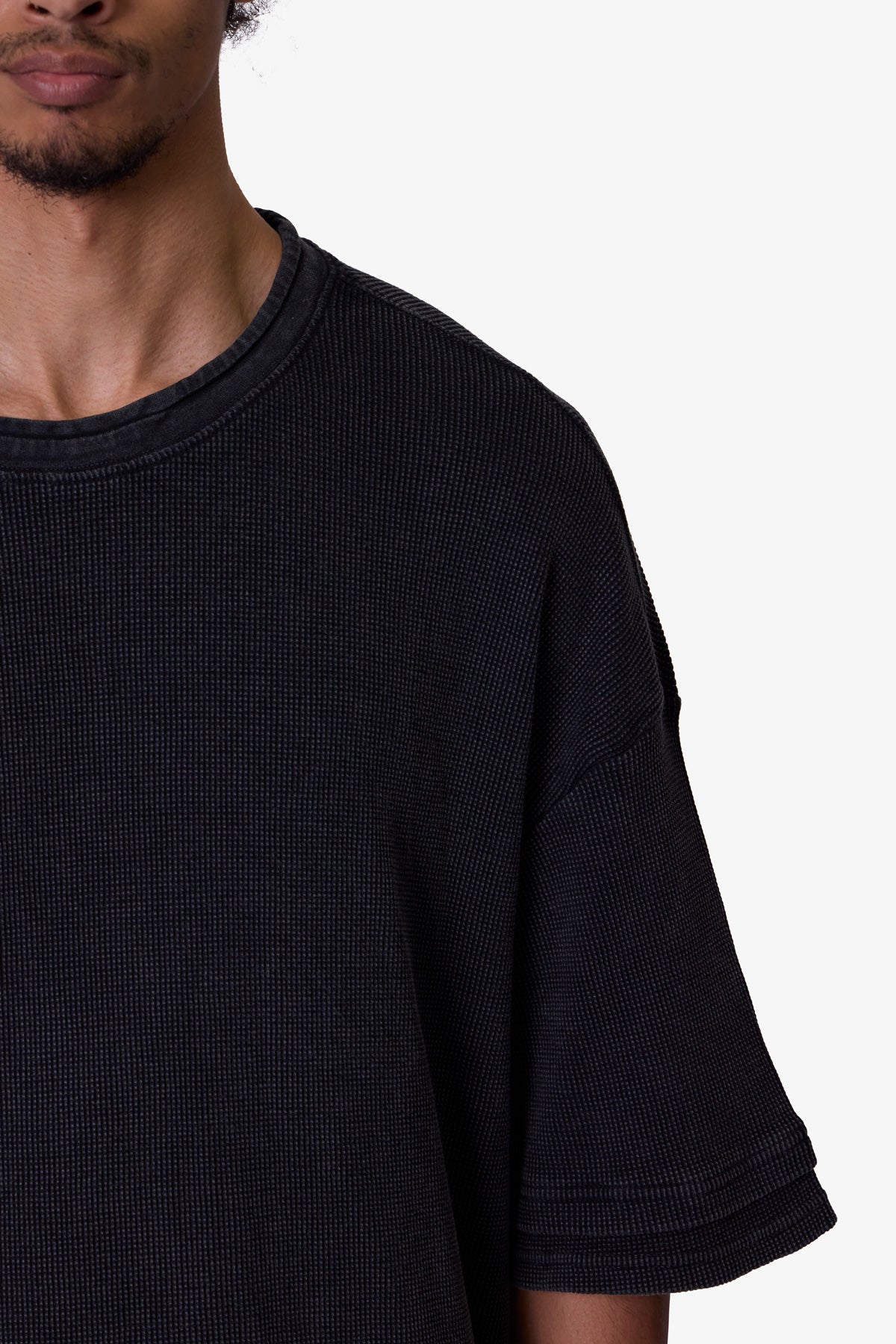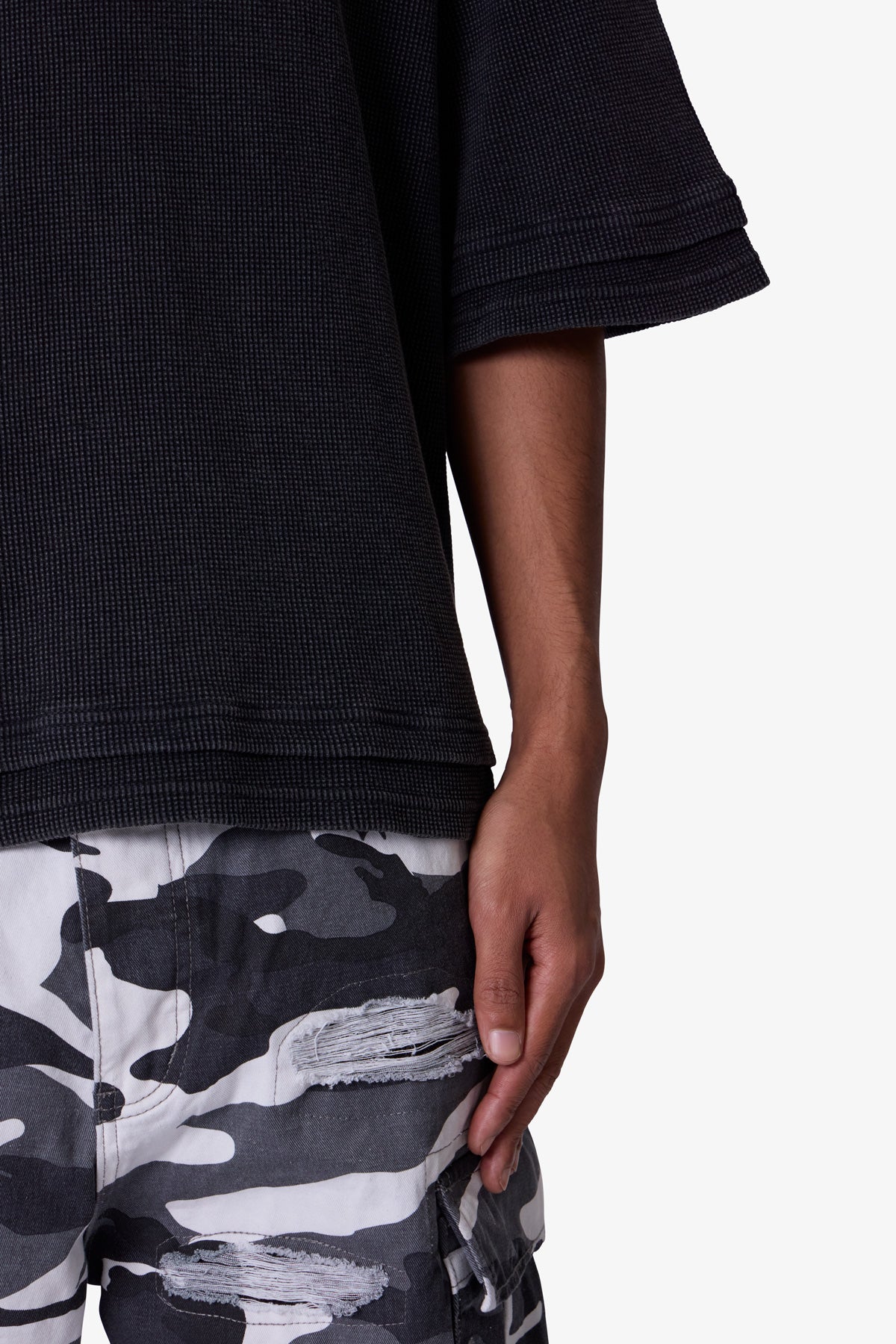 the Double Layer Acid Washed Tee is constructed from a custom developed cotton thermal fabric and features a relaxed tee layered with 2 short sleeves. and finished with a vintage wash throughout for improved hand feel.
