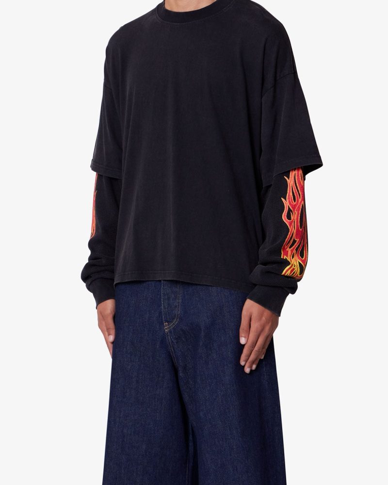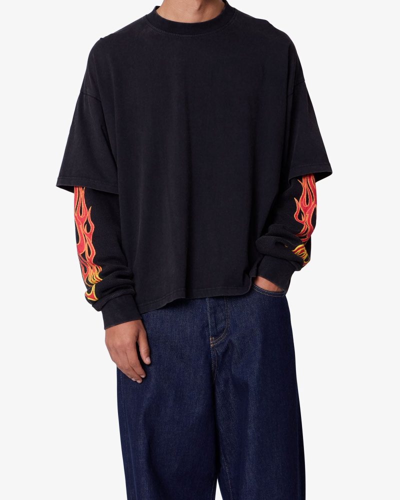 Double Layer Thermal Sleeve Tee – Washed Black