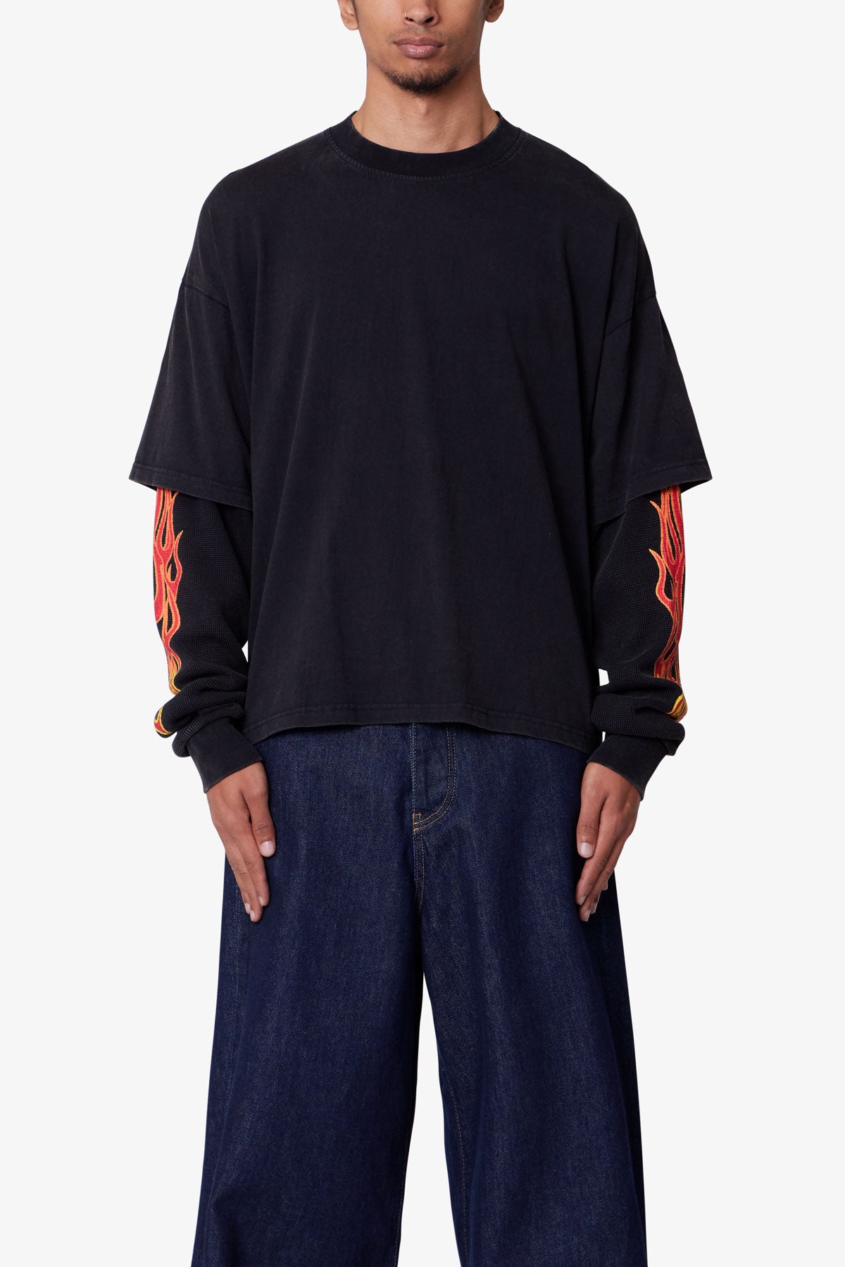 Double Layer Thermal Sleeve Tee – Washed Black