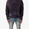 the Frayed Seam Acid Wash Sweatpants features a baggy fit with a dropped shoulder welt pockets at the waist. elasticized self at the waist. exposed seam details throughout. and finished in both an acid washed and brushed fleece fabric.