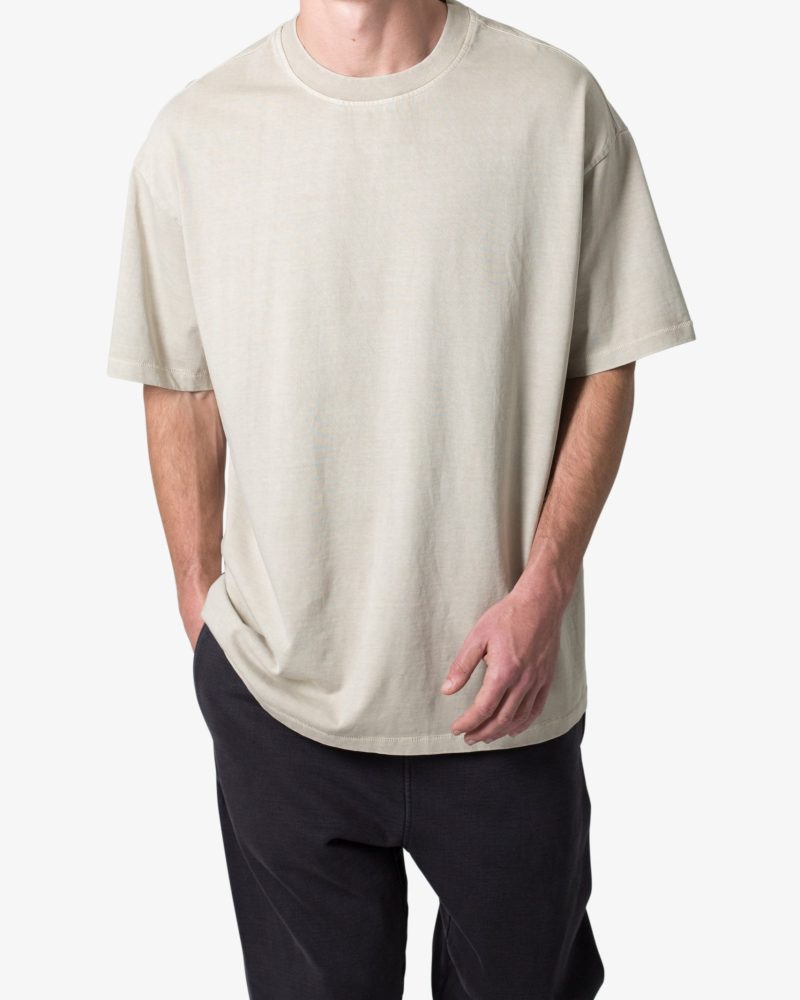 Our Heavy Every Day Tee is crafted from heavyweight 300 gsm cotton for unmatched quality and comfort. Featuring a garment-dyed jersey-knit for a luxurious feel and a contemporary relaxed fit. these tees offer a relaxed. yet refined fit. The unique combination of a wider fit and subtle crop brings a modern twist to your every day wardrobe.