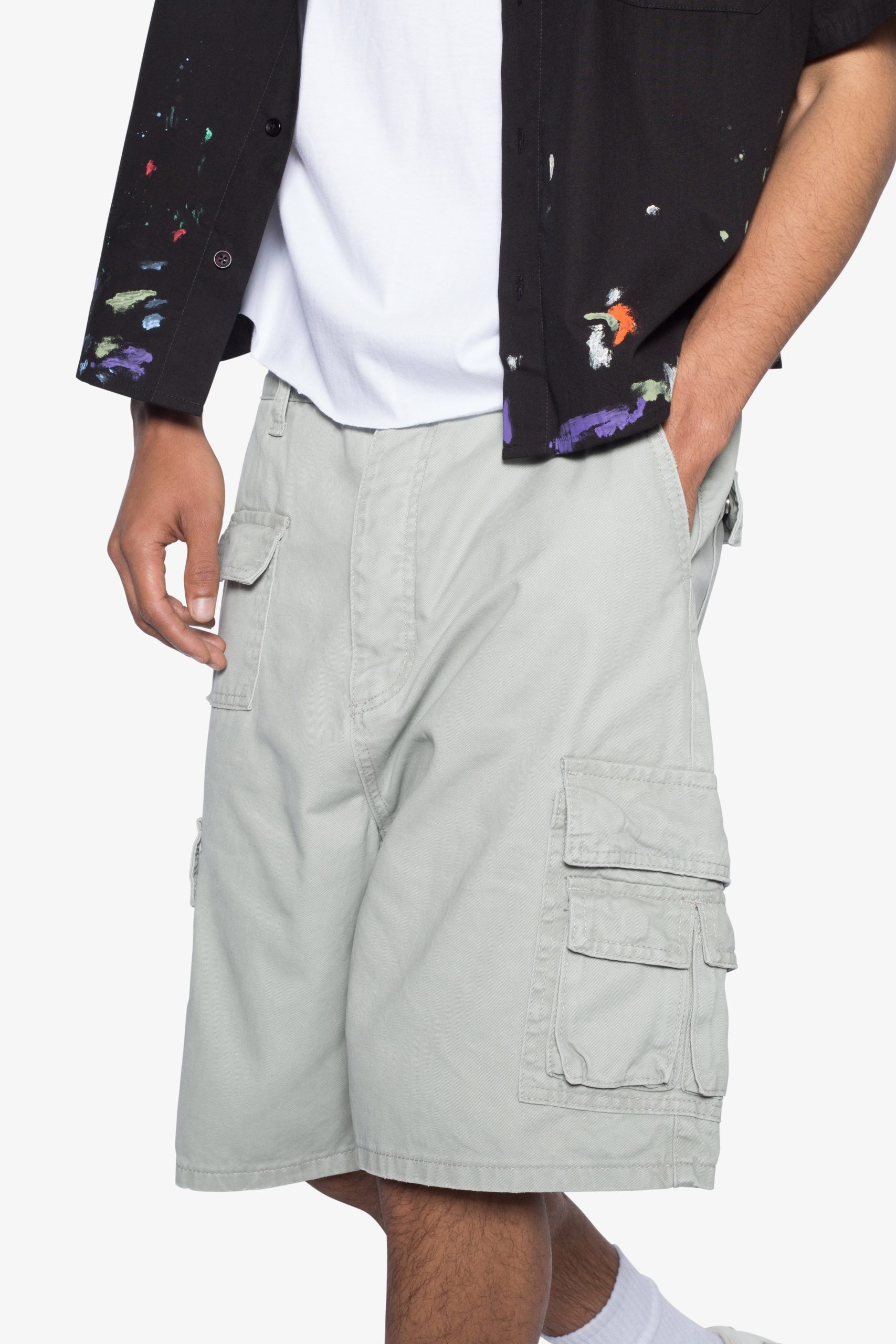 the Multi Pocket Cargo Shorts are constructed from a custom cotton twill fabric in a relaxed fit. The short feature a snap closure at the waist. welt pockets at the outseam. cargo pockets throughout. and finished in a vintage wash for improved hand feel.