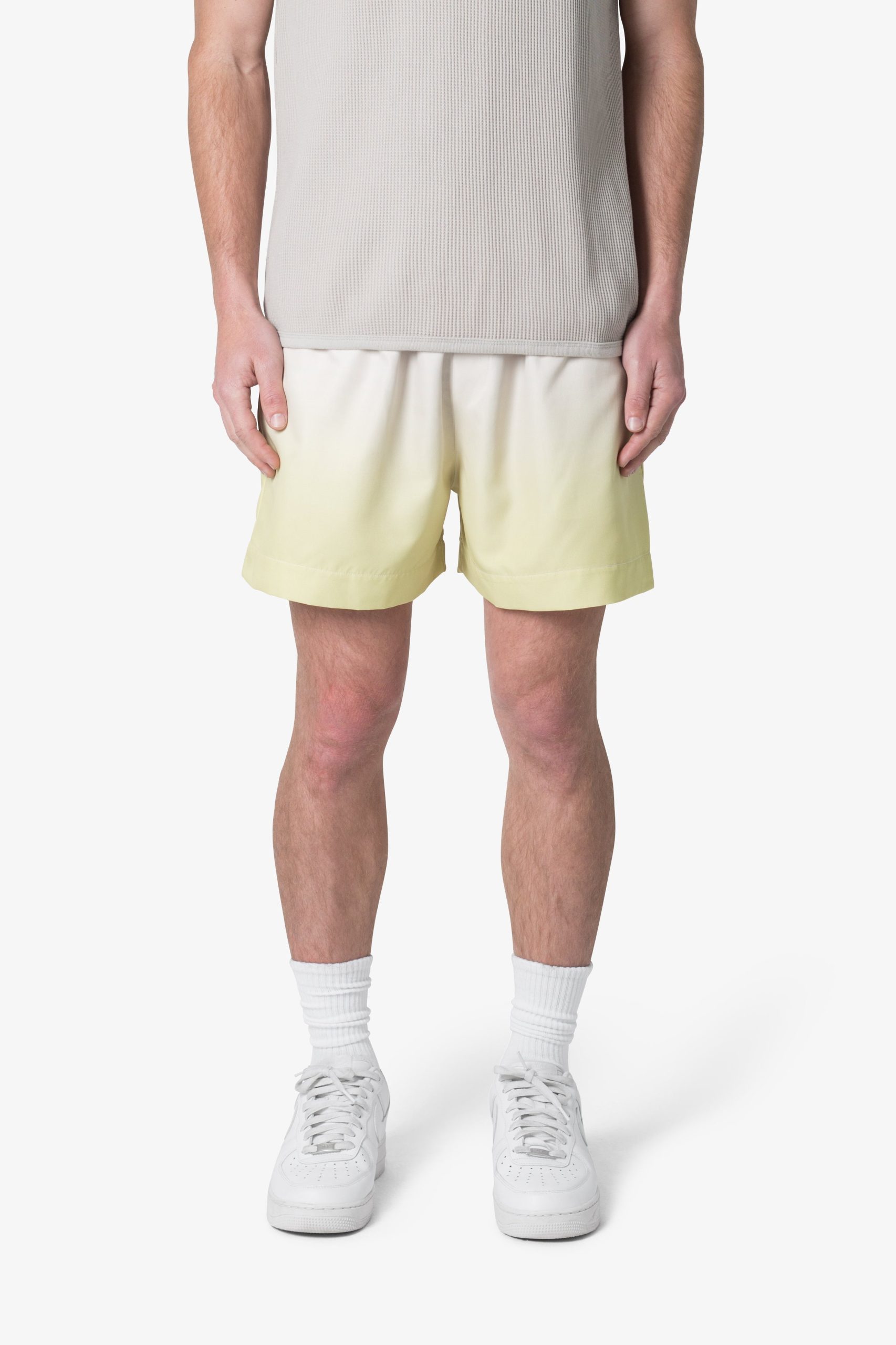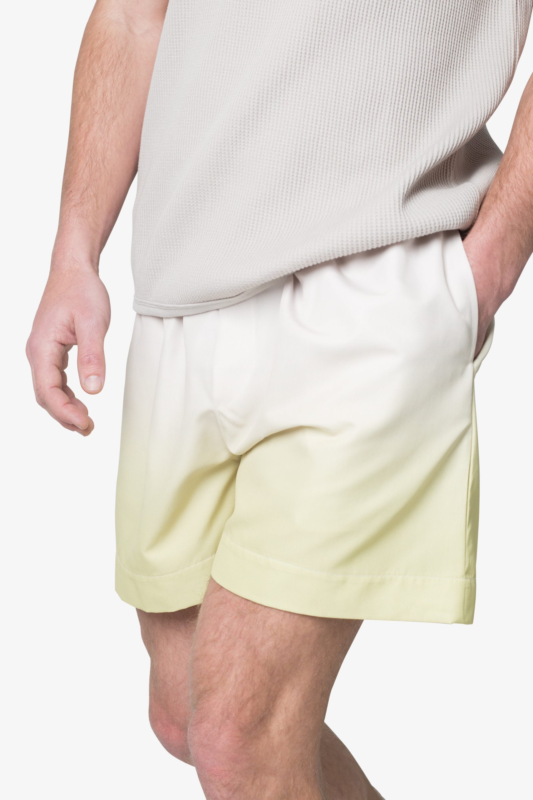 the Ombre Summer Shorts are constructed with a polyester fabric in a relaxed fit. The shorts feature an elasticized waist. welt pockets. an ombre from yellow to tan. and finished with an internal drawcord.