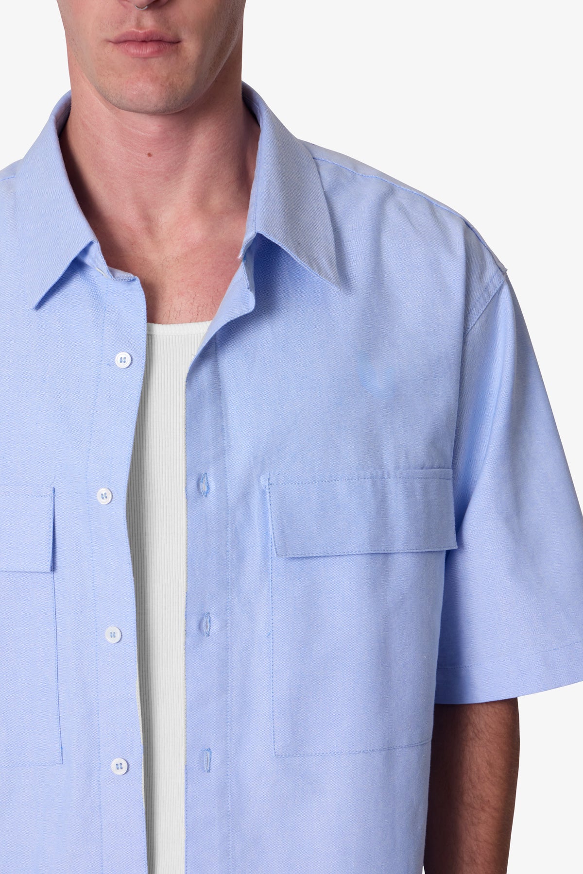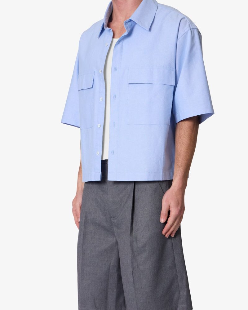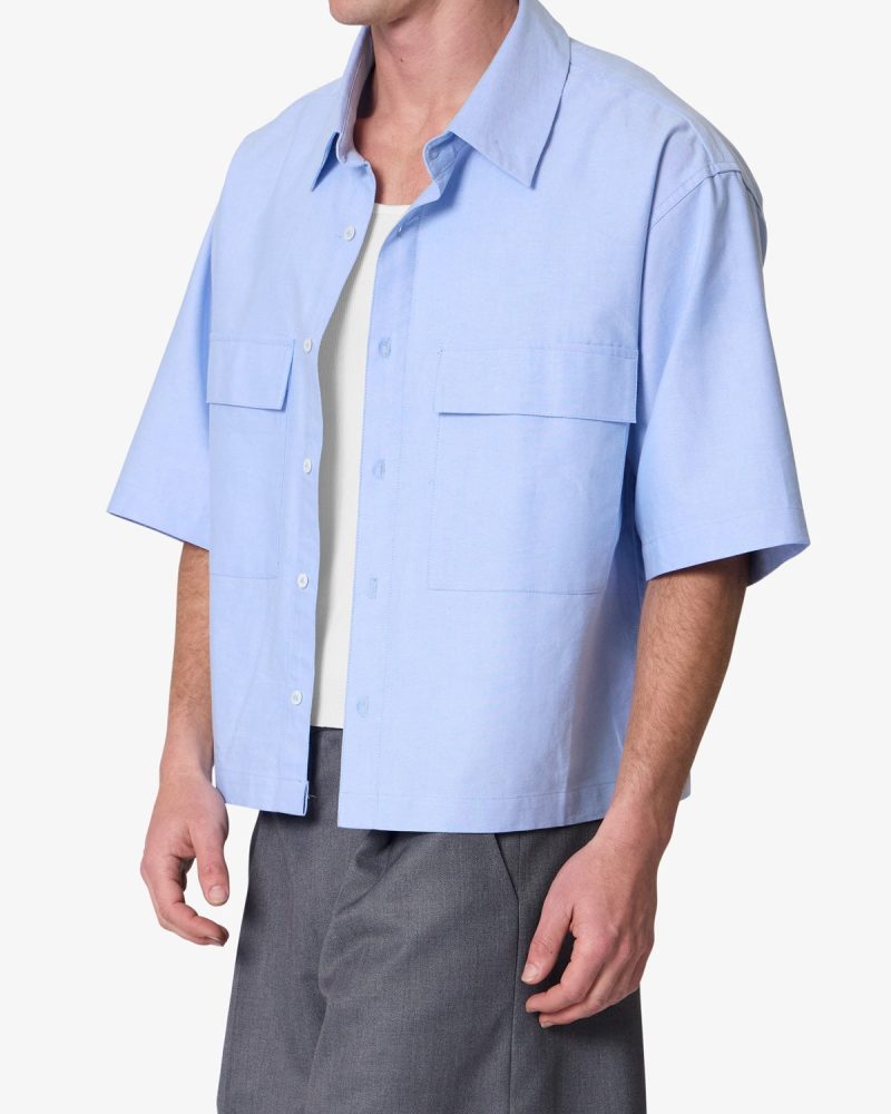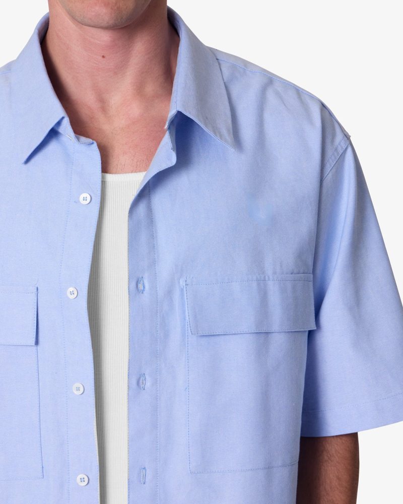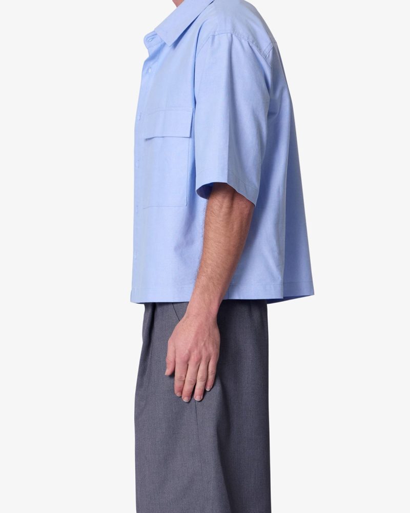 the Poplin Bus Driver Shirt is made from a 100% cotton fabric. The relaxed-fit shirt features a button placket. flat hem. and is finished with a pockets on the chest.