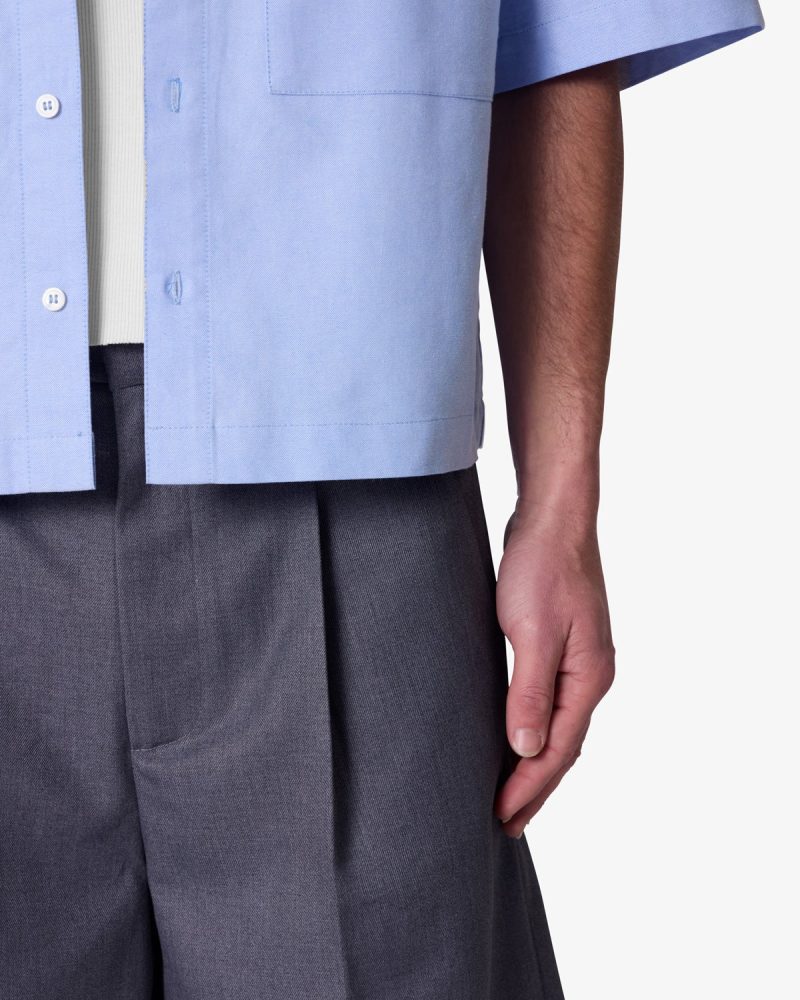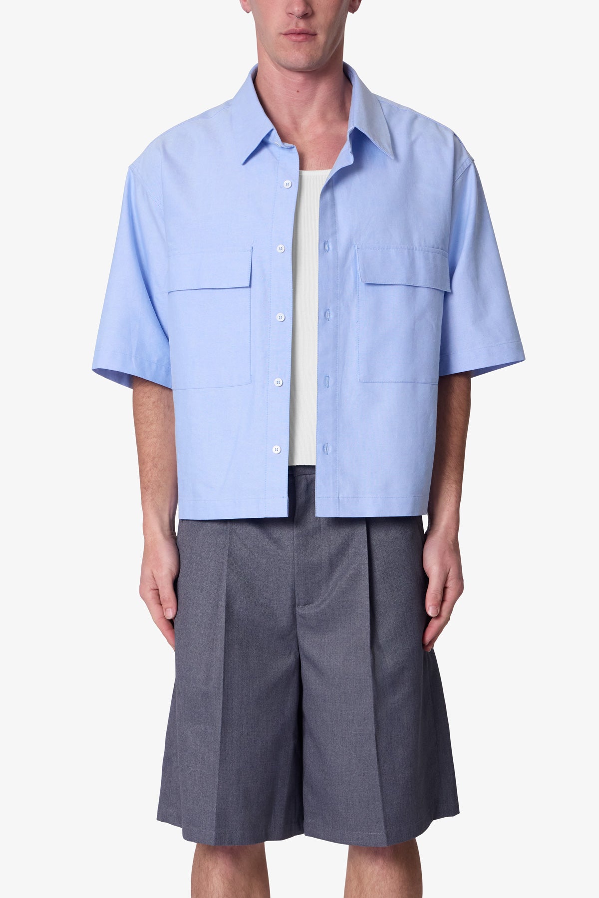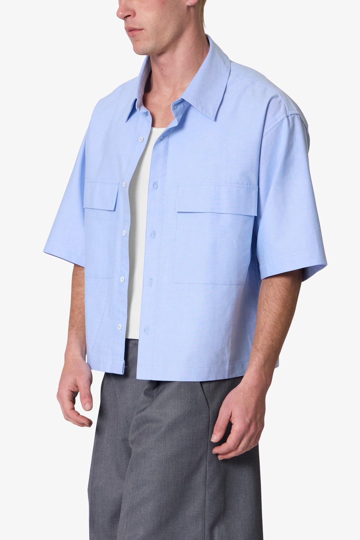 the Poplin Bus Driver Shirt is made from a 100% cotton fabric. The relaxed-fit shirt features a button placket. flat hem. and is finished with a pockets on the chest.