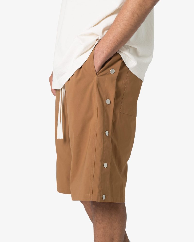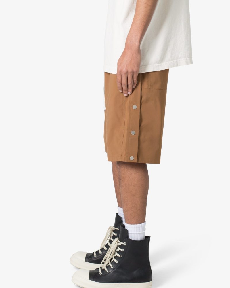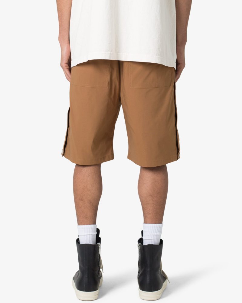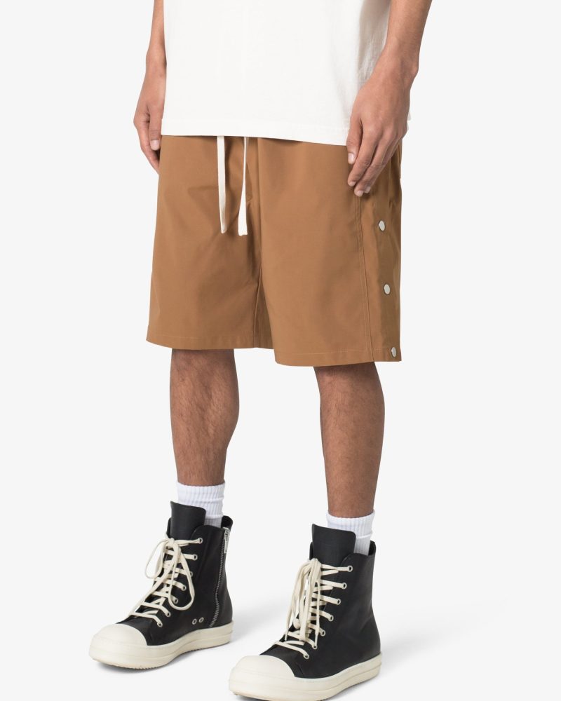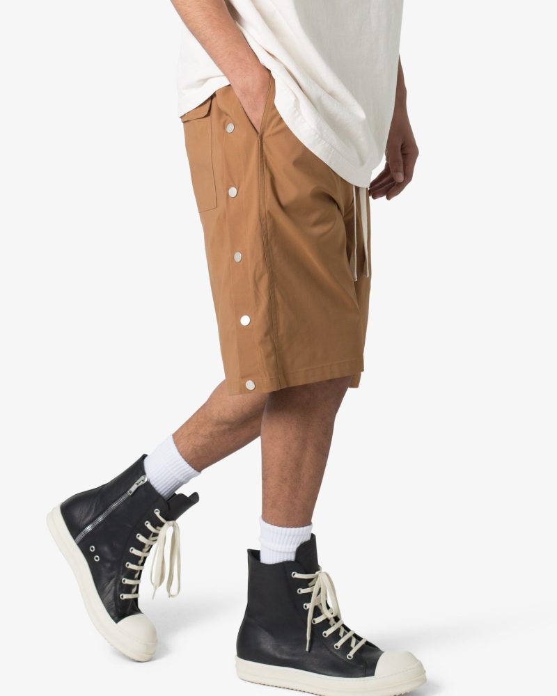 the Side Snap Nylon Shorts are designed in an oversized fit. constructed from a custom developed nylon fabric with lining. contrast drawcord. welt pockets at the side seam. and finished with snap details up the outseam.