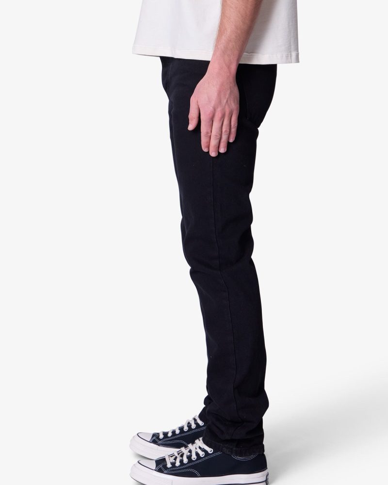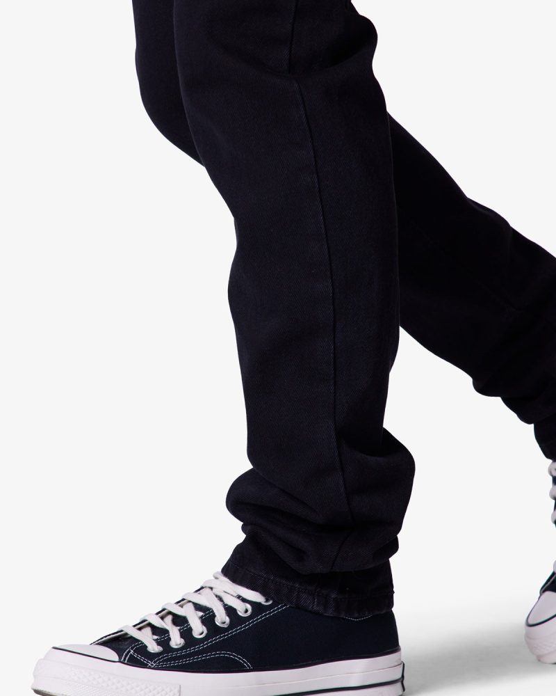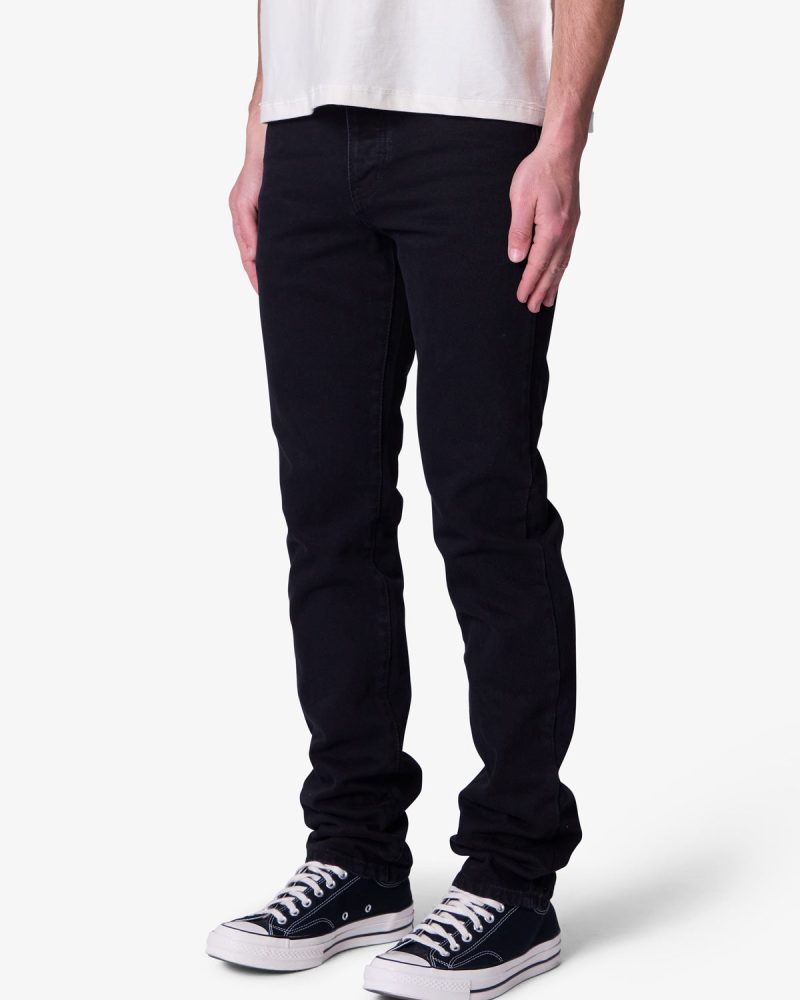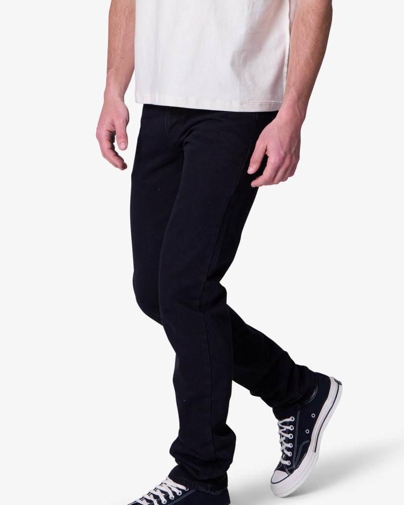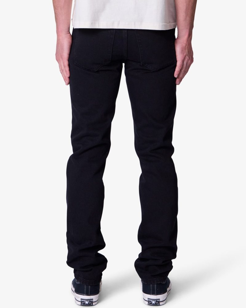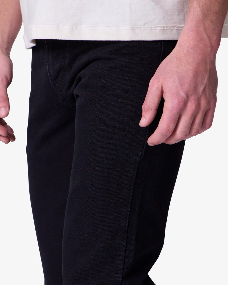the new Slim Denim are designed with our new and updated slim fit. which is slim throughout for an updated look. and is constructed from 13 oz black stretch cotton denim with a light rinse wash. and finished with traditional five pocket denim details.