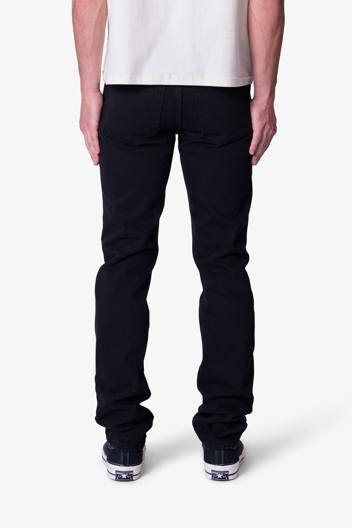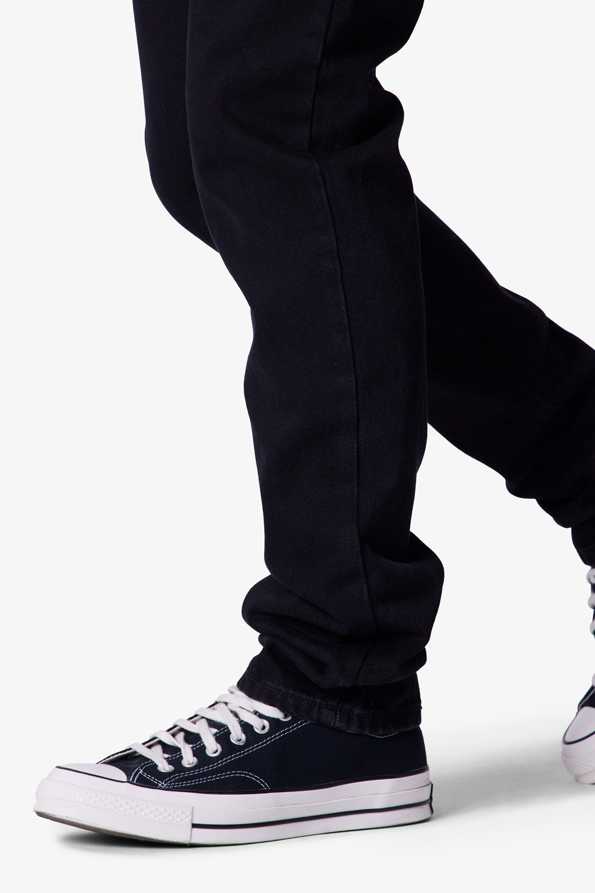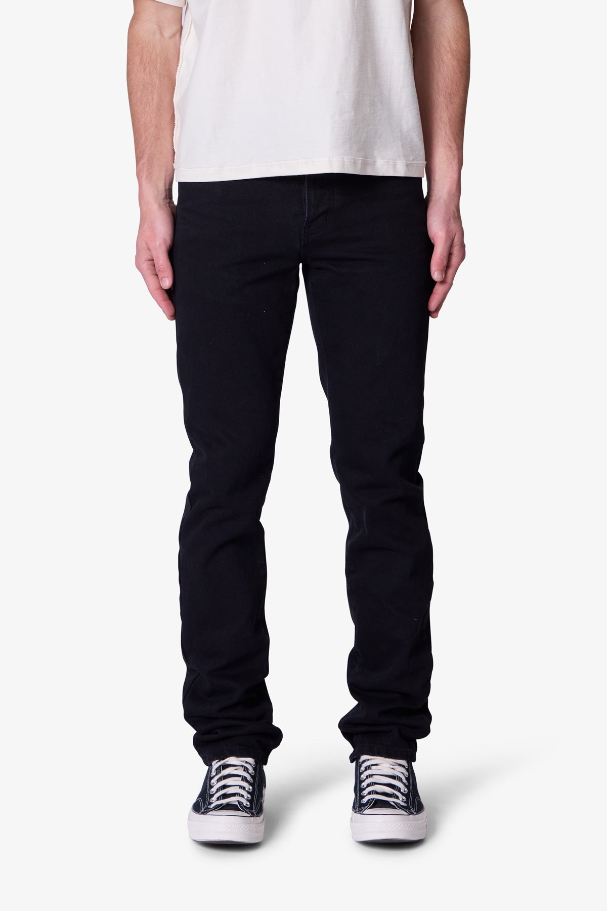 the new Slim Denim are designed with our new and updated slim fit. which is slim throughout for an updated look. and is constructed from 13 oz black stretch cotton denim with a light rinse wash. and finished with traditional five pocket denim details.