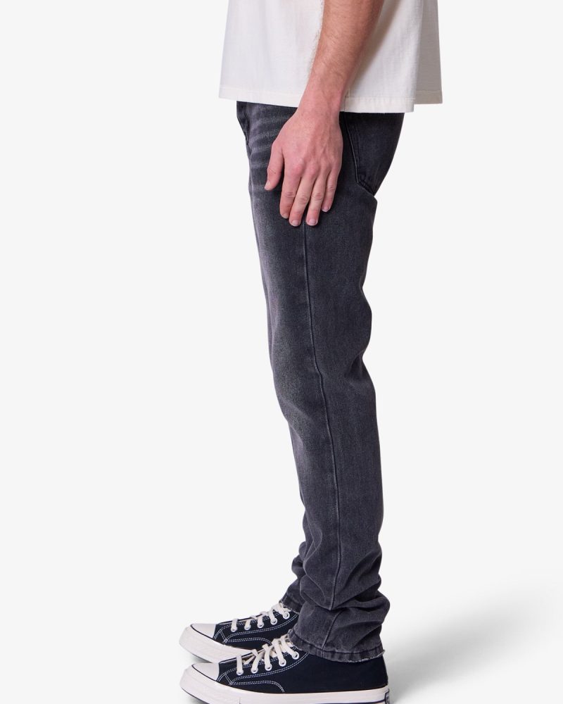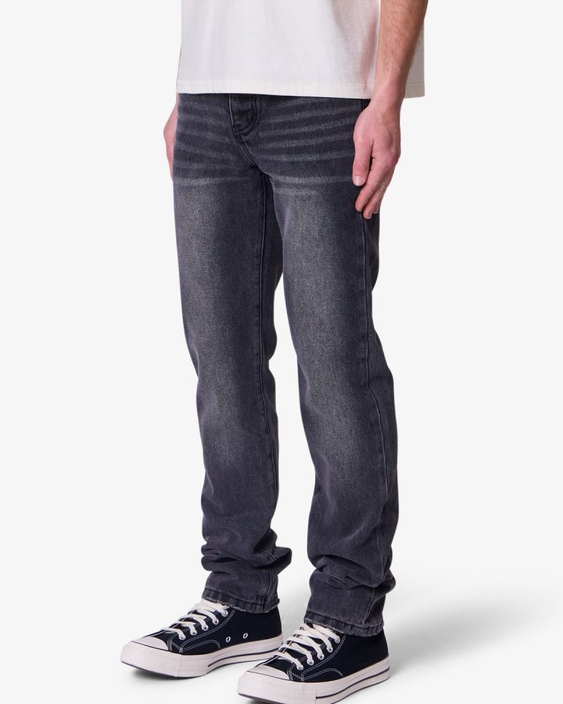 the new Slim Denim are designed with our new and updated slim fit. which is slim throughout for an updated look. and is constructed from 13 oz black stretch cotton denim with a vintage wash. and finished with traditional five pocket denim details.