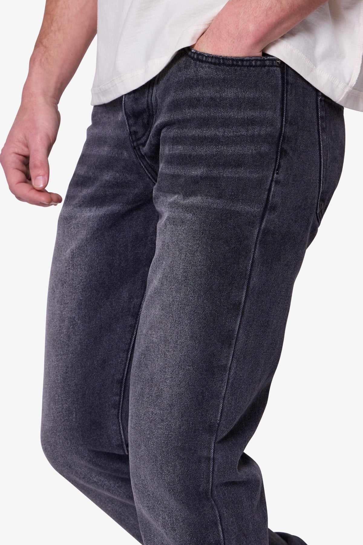 the new Slim Denim are designed with our new and updated slim fit. which is slim throughout for an updated look. and is constructed from 13 oz black stretch cotton denim with a vintage wash. and finished with traditional five pocket denim details.