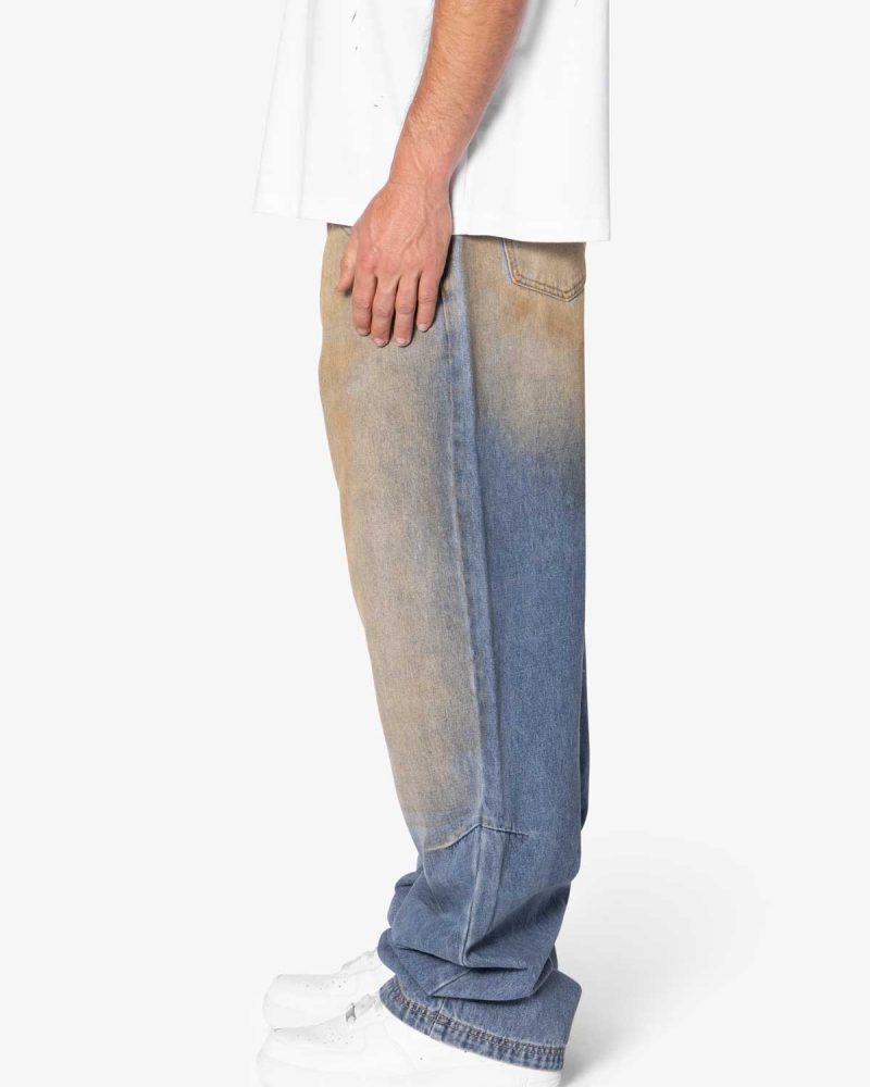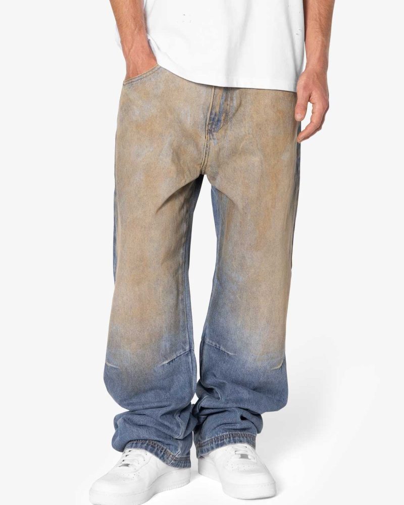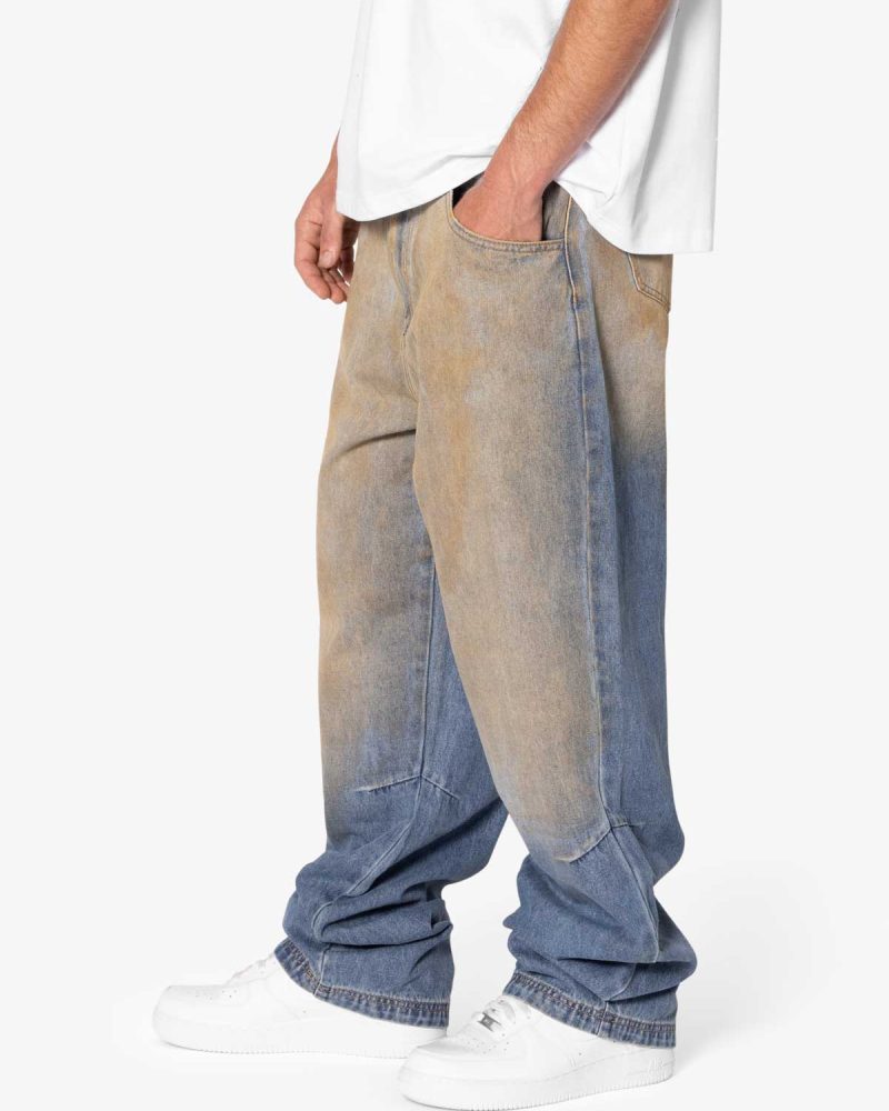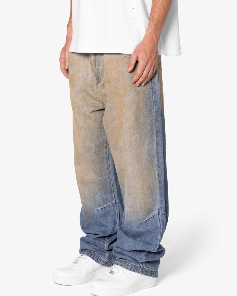 the Ultra Baggy Barn Vintage Denim are designed with a new oversized ultra baggy fit. constructed from 100% cotton denim with a medium base wash. featuring a purposeful gradient effect to convey a dirty effect. and finished with brown ‘mud’ remarks.