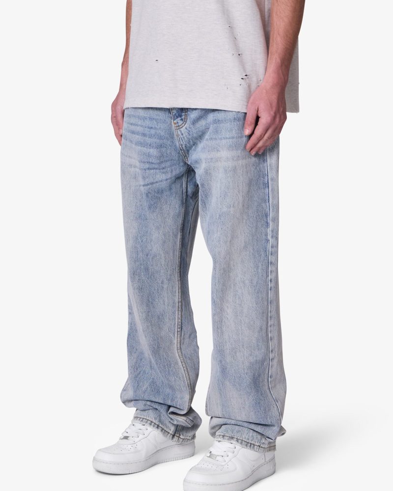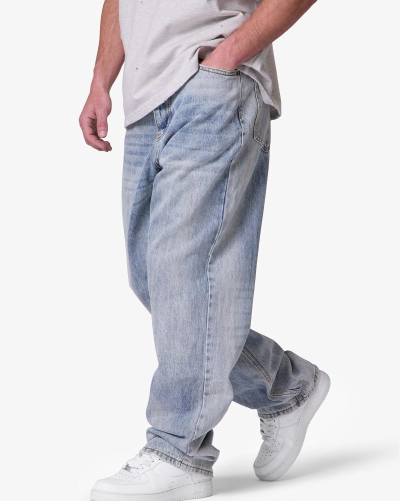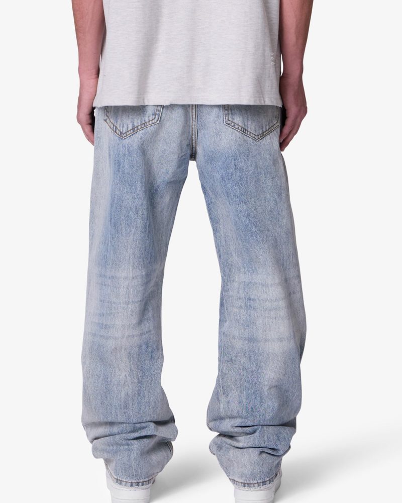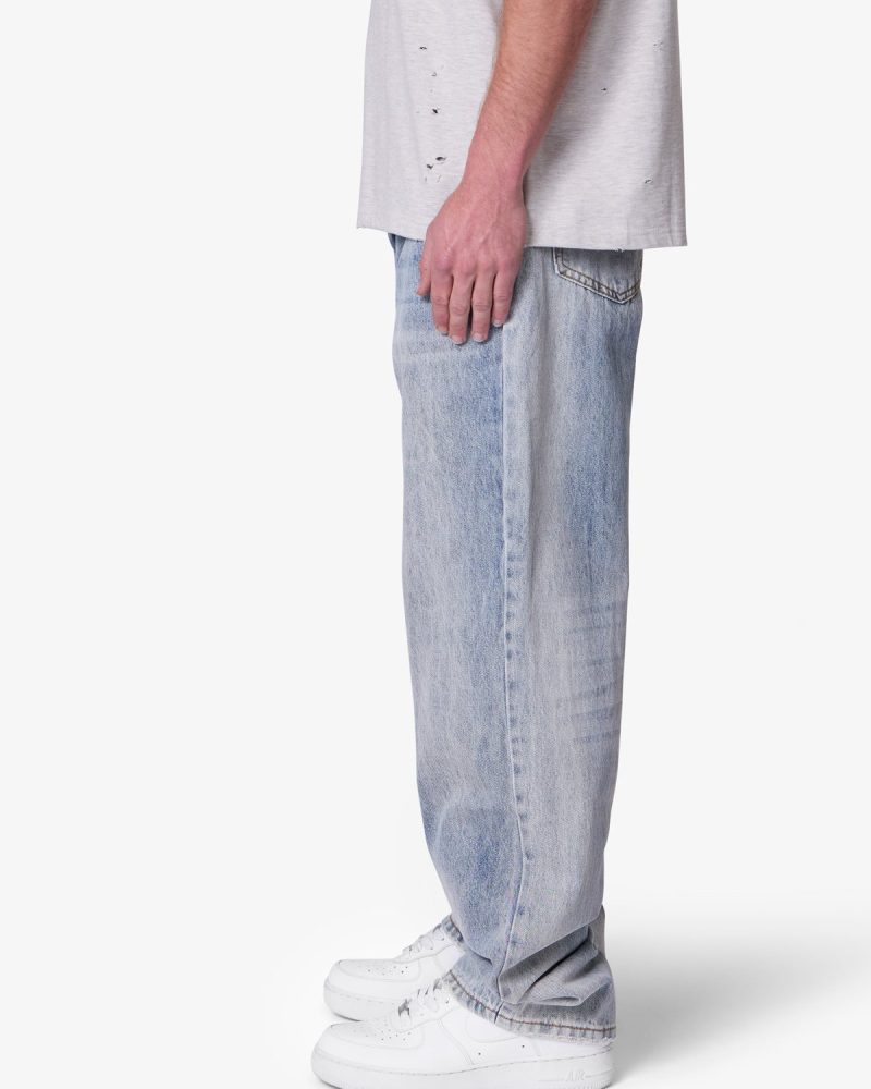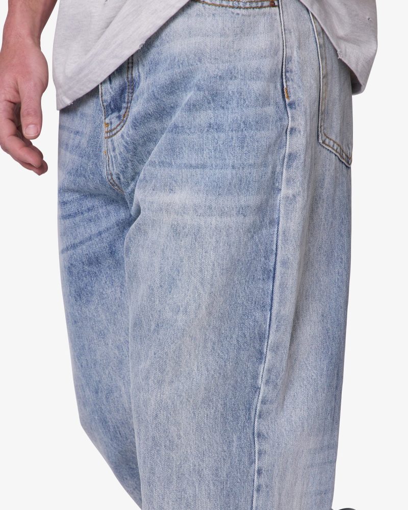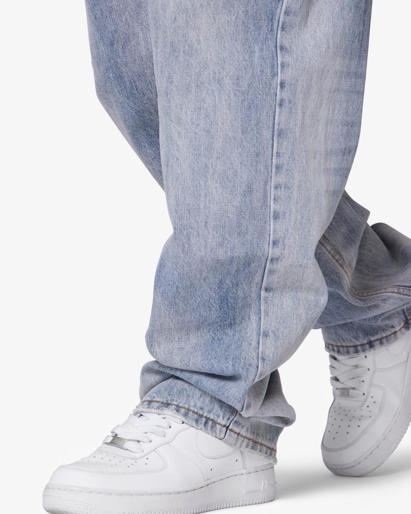 the Ultra Baggy Denim are designed with a new oversized ultra baggy fit. constructed from denim with a light wash. featuring standard five pocket denim details. and finished with a button placket.