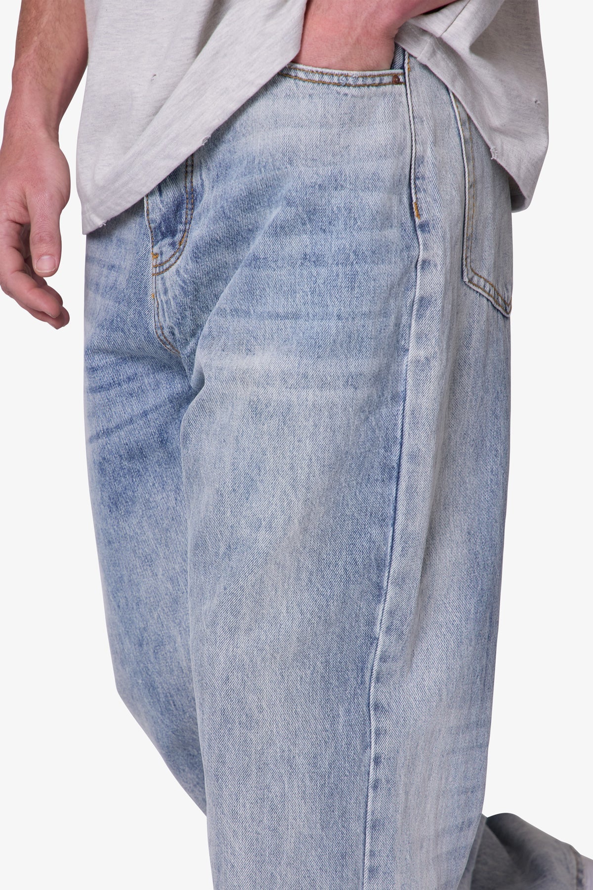 the Ultra Baggy Denim are designed with a new oversized ultra baggy fit. constructed from denim with a light wash. featuring standard five pocket denim details. and finished with a button placket.