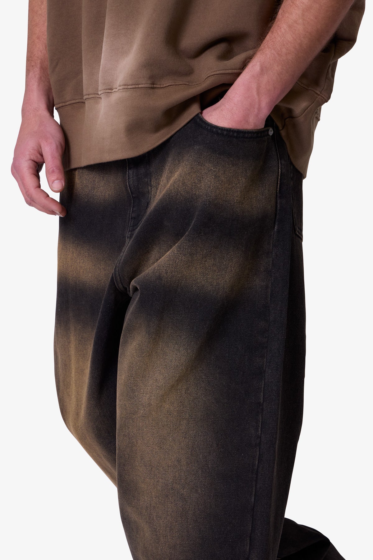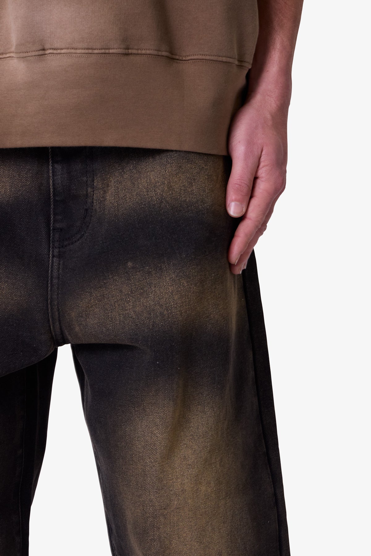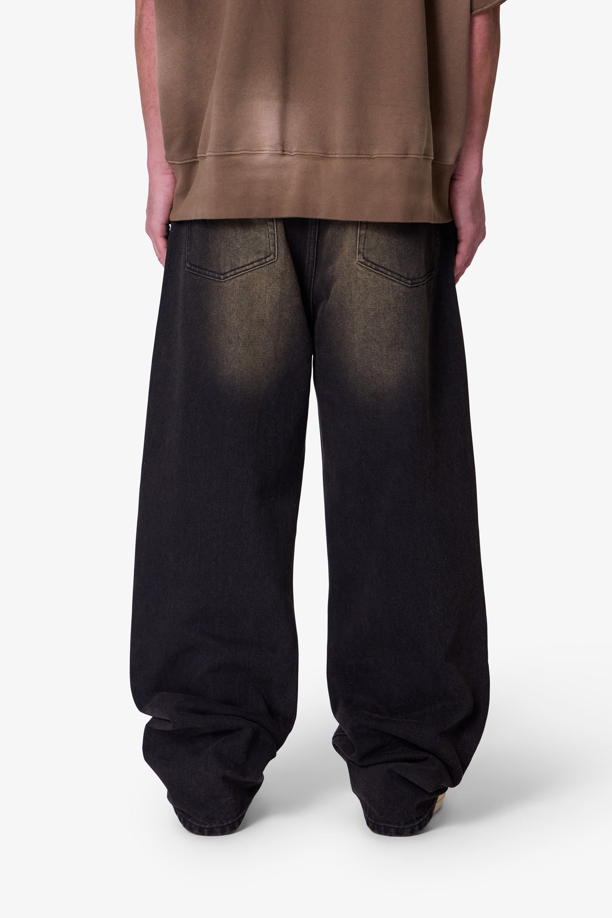 the Ultra Baggy Dried Denim are designed with a new oversized ultra baggy fit. constructed from black denim with a vintage wash with sanding throughout. featuring standard five pocket denim details. and finished with a button placket.