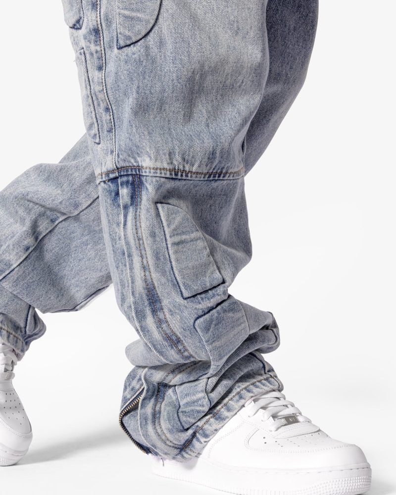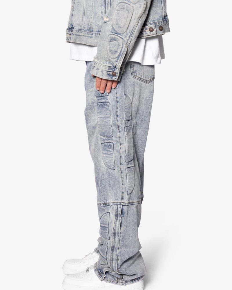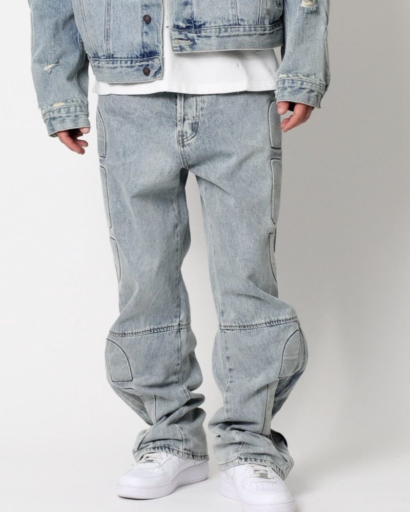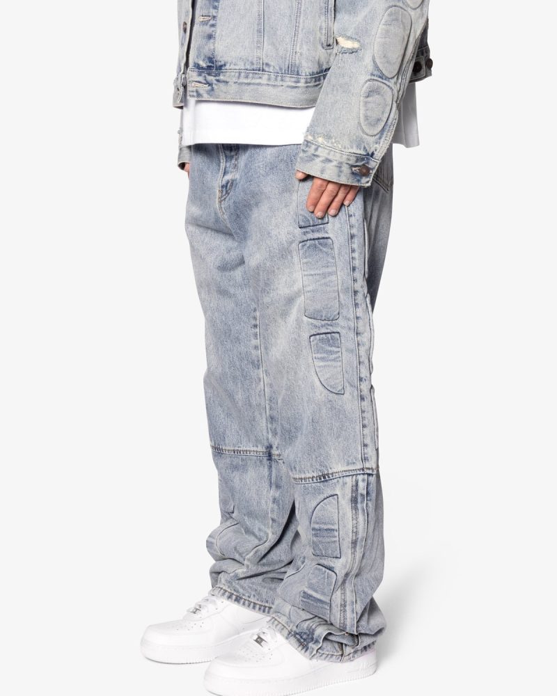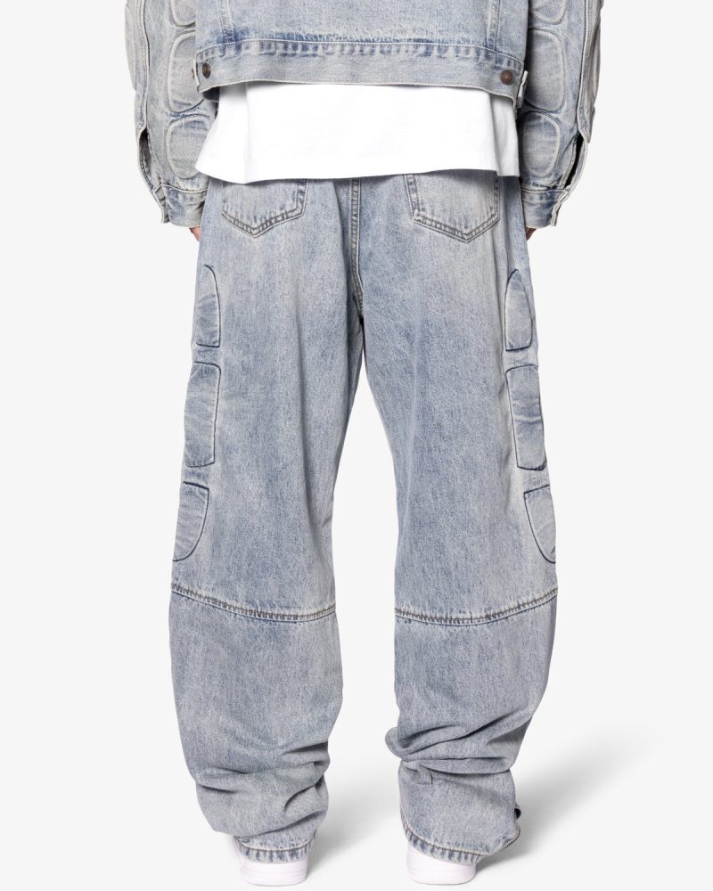 the Ultra Baggy Moto Denim are designed with a new oversized ultra baggy fit. constructed from denim with a vintage wash. padded moto inspired details at the outseam. featuring standard five pocket denim details. and finished with a button placket.