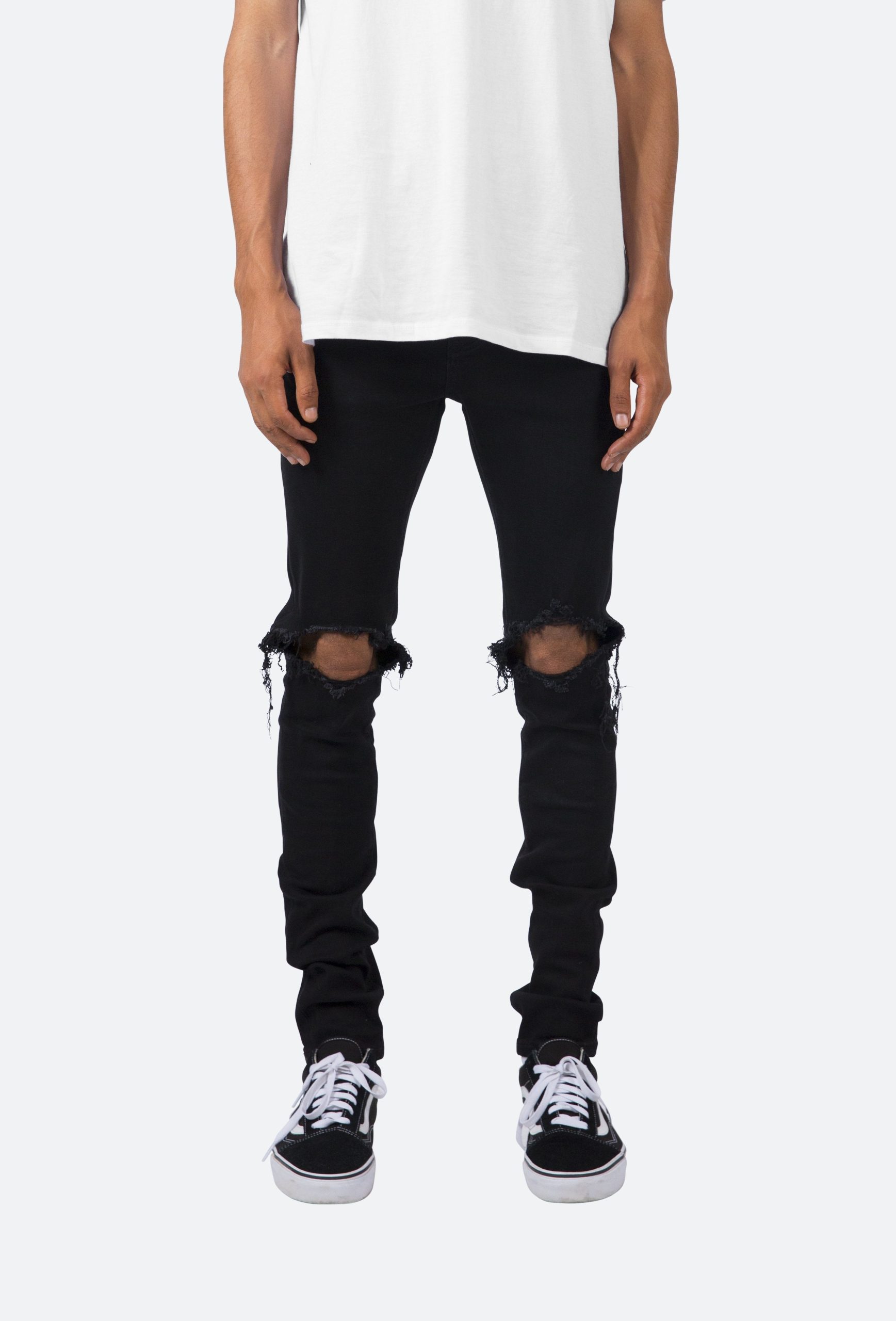 the X1 Skinny Denim is designed with our new X fit which is skinny throughout with an extended inseam for stacking. and features a vintage black wash and custom distressing at the knees.