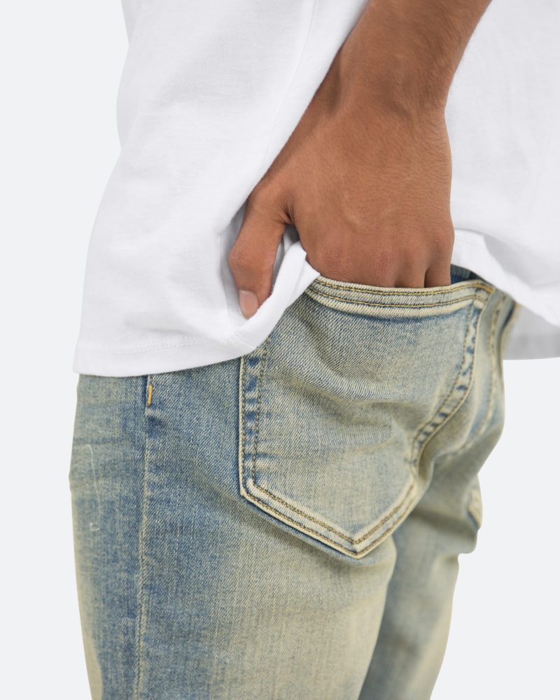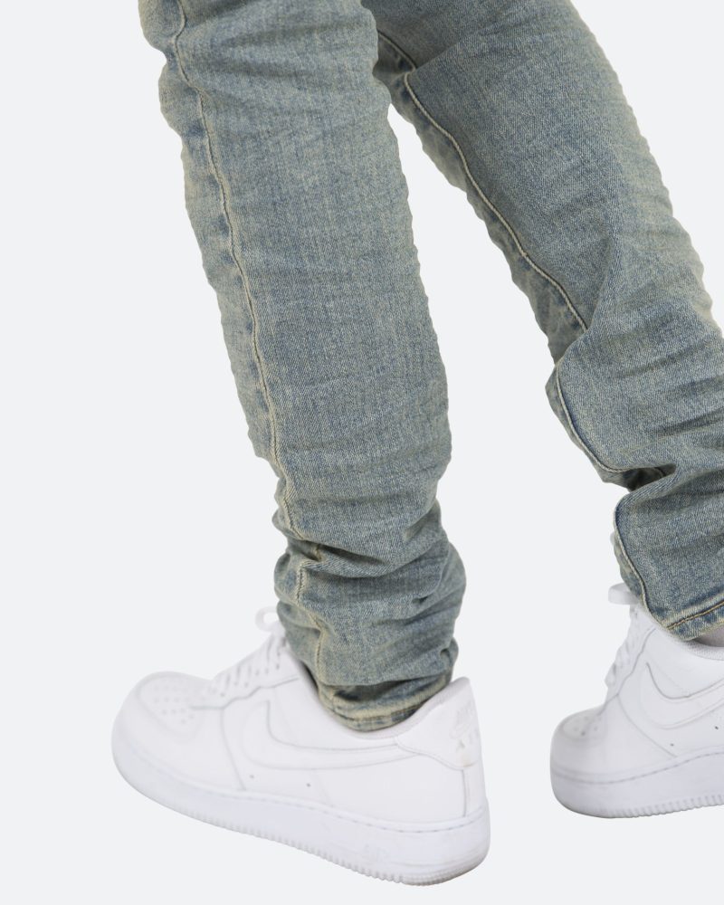 the X5 Stretch Denim is designed with our new X fit which is skinny throughout with an extended inseam for stacking. and features a warm wash throughout.