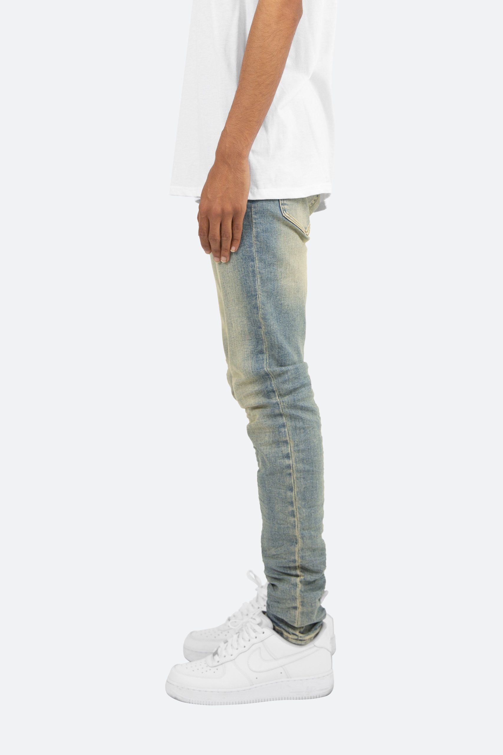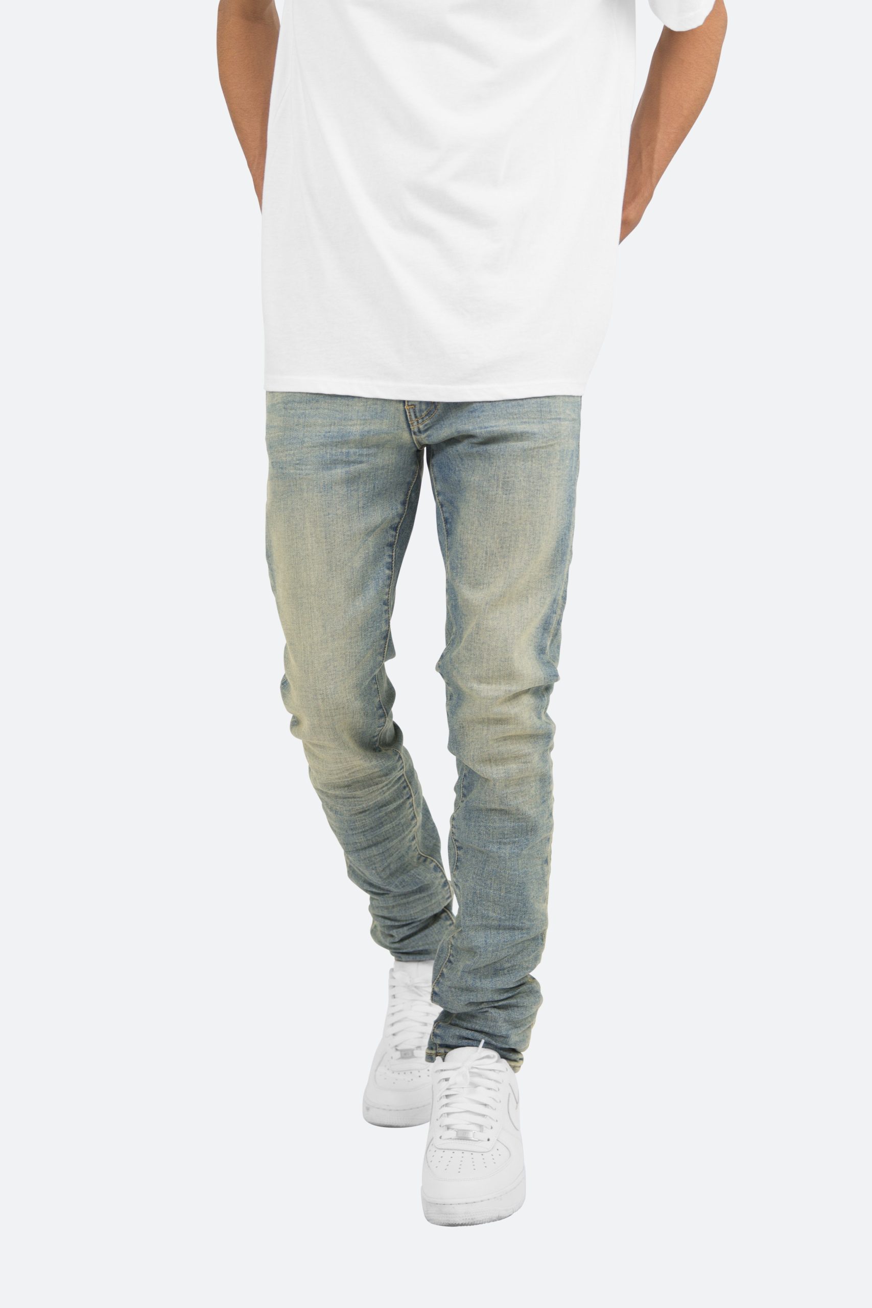 the X5 Stretch Denim is designed with our new X fit which is skinny throughout with an extended inseam for stacking. and features a warm wash throughout.