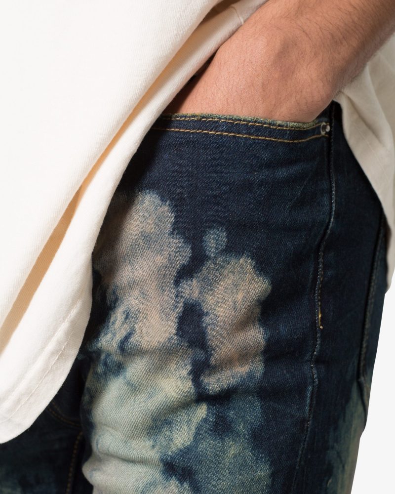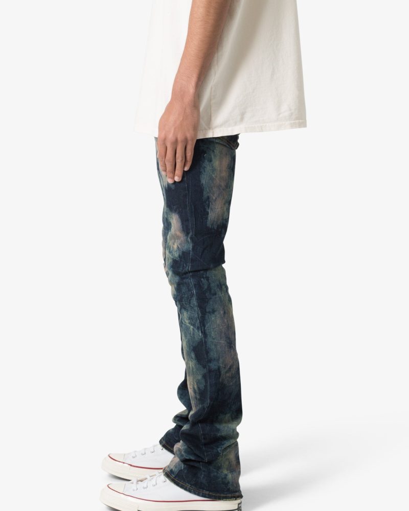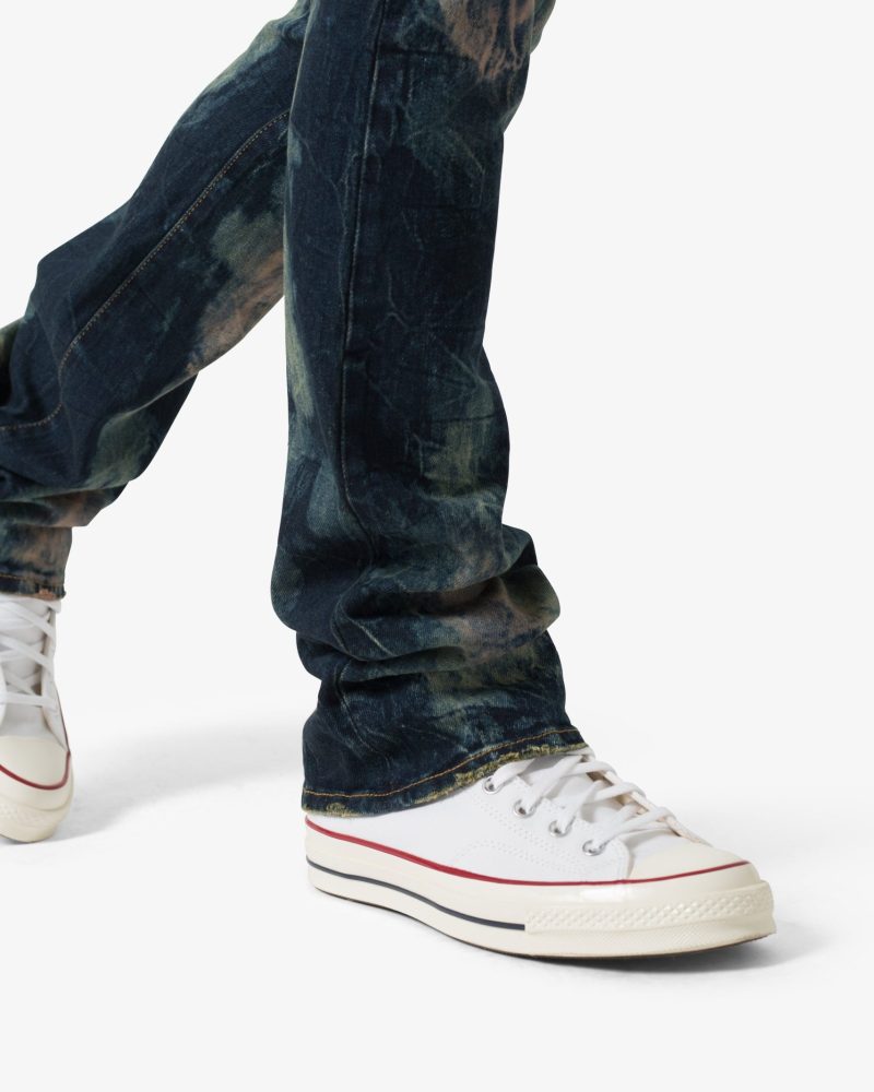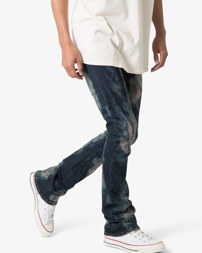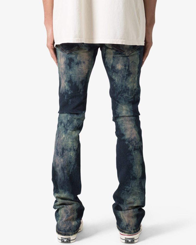 the X625 Skinny Stacked Denim is designed with our new X fit which is skinny throughout with an extended inseam for stacking and a flare at the leg opening. constructed from stretch denim. and finished with a color tinted splotch dye wash and light garment wash for improved hand feel.