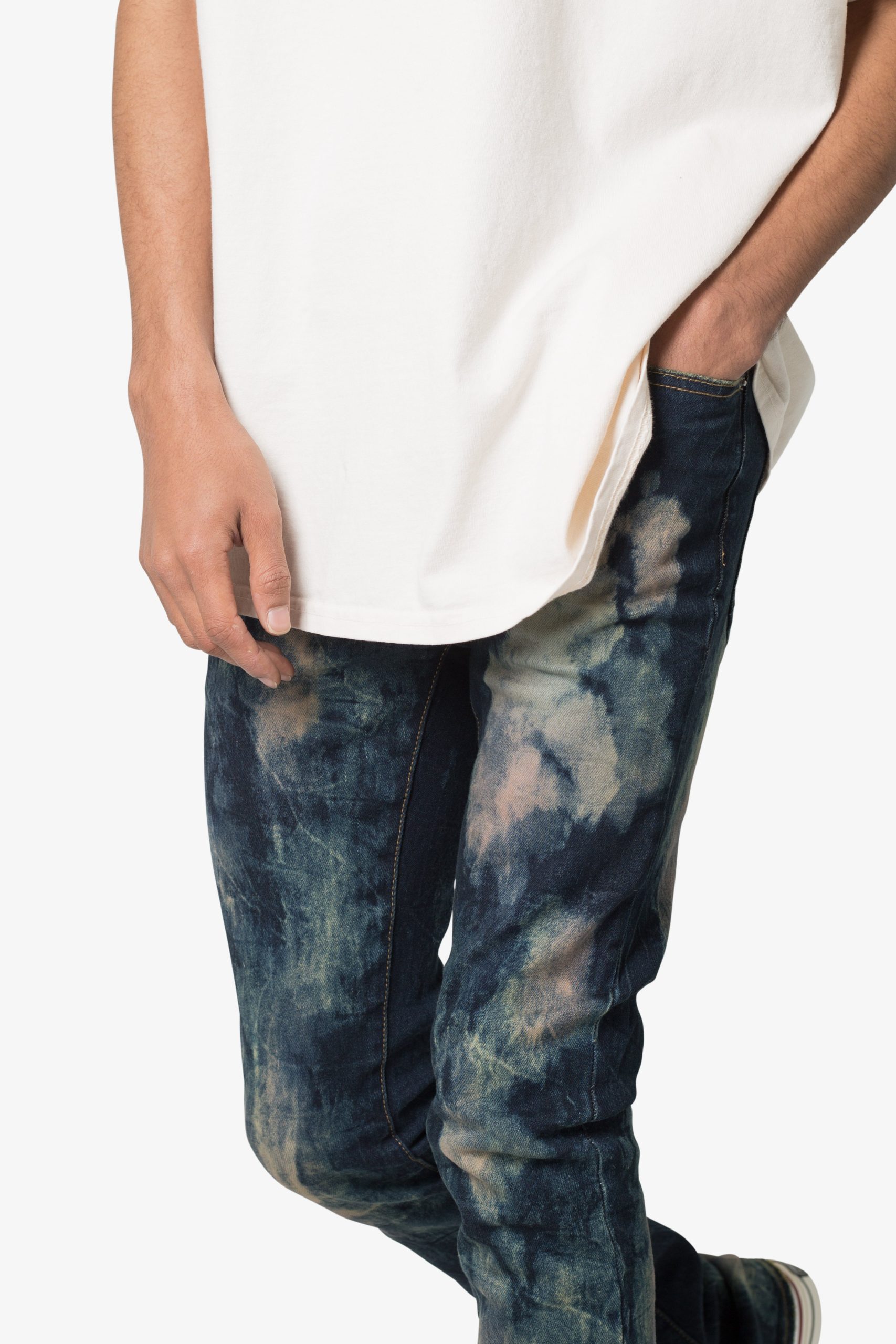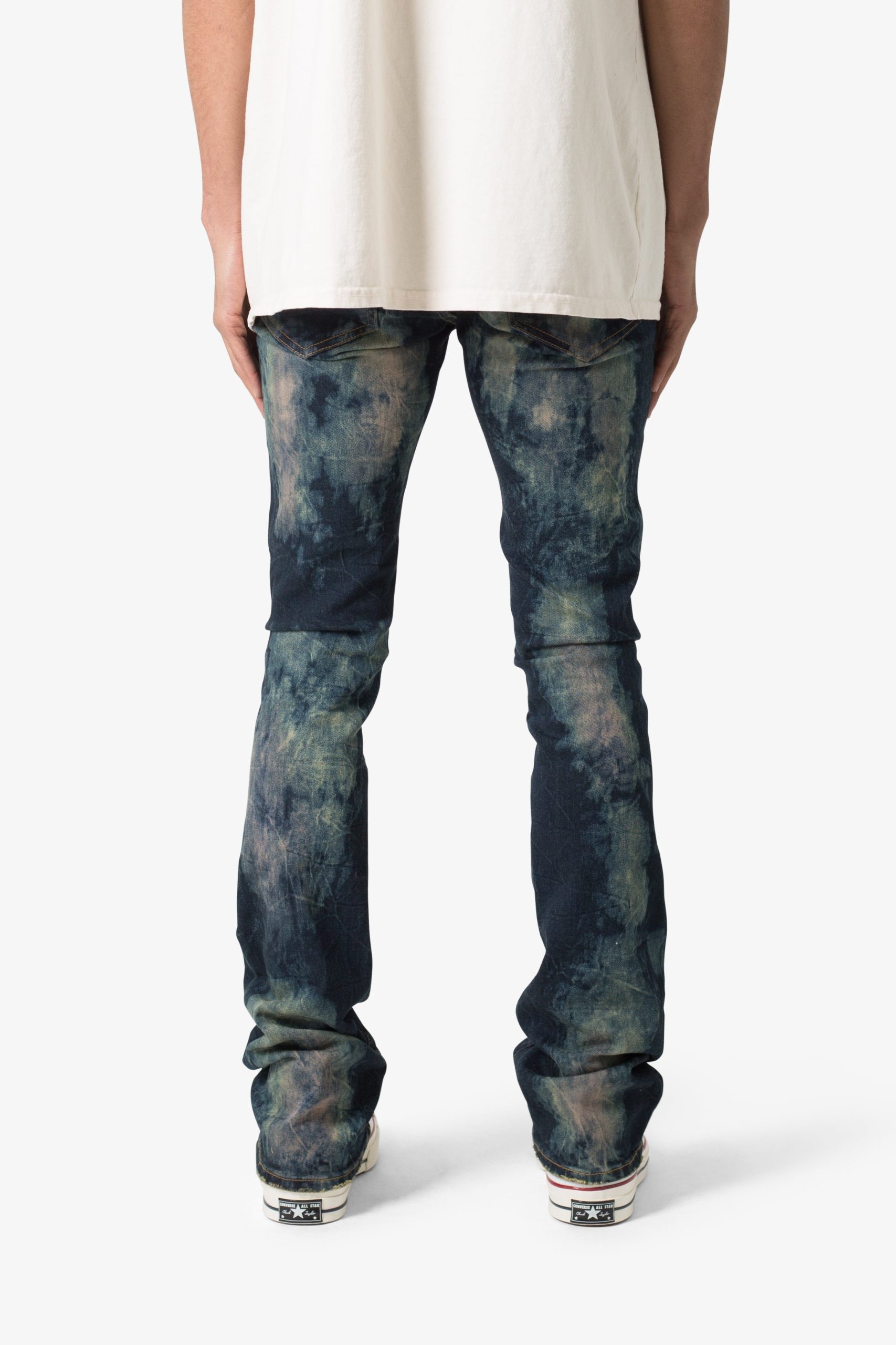 the X625 Skinny Stacked Denim is designed with our new X fit which is skinny throughout with an extended inseam for stacking and a flare at the leg opening. constructed from stretch denim. and finished with a color tinted splotch dye wash and light garment wash for improved hand feel.